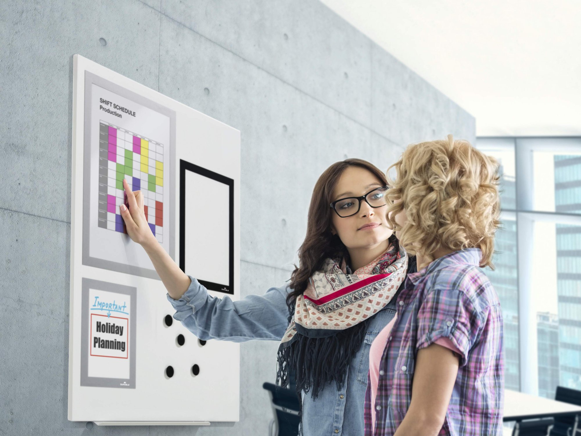 Professional, eye-catching display: Boldly coloured frames with discreet magnetic strips for a clean, sleek look.