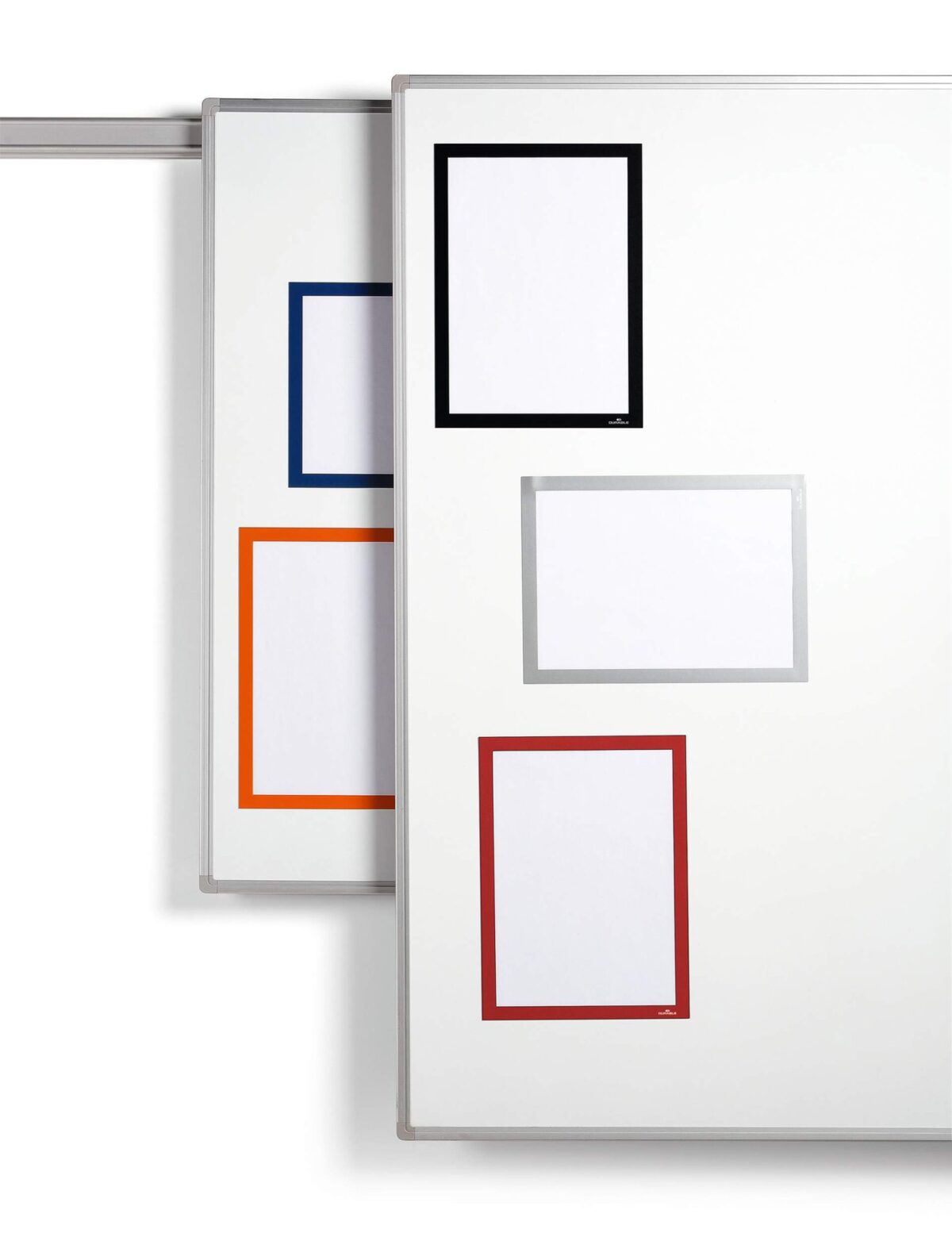 Professional, eye-catching display: Boldly coloured frames with discreet magnetic strips for a clean, sleek look.
