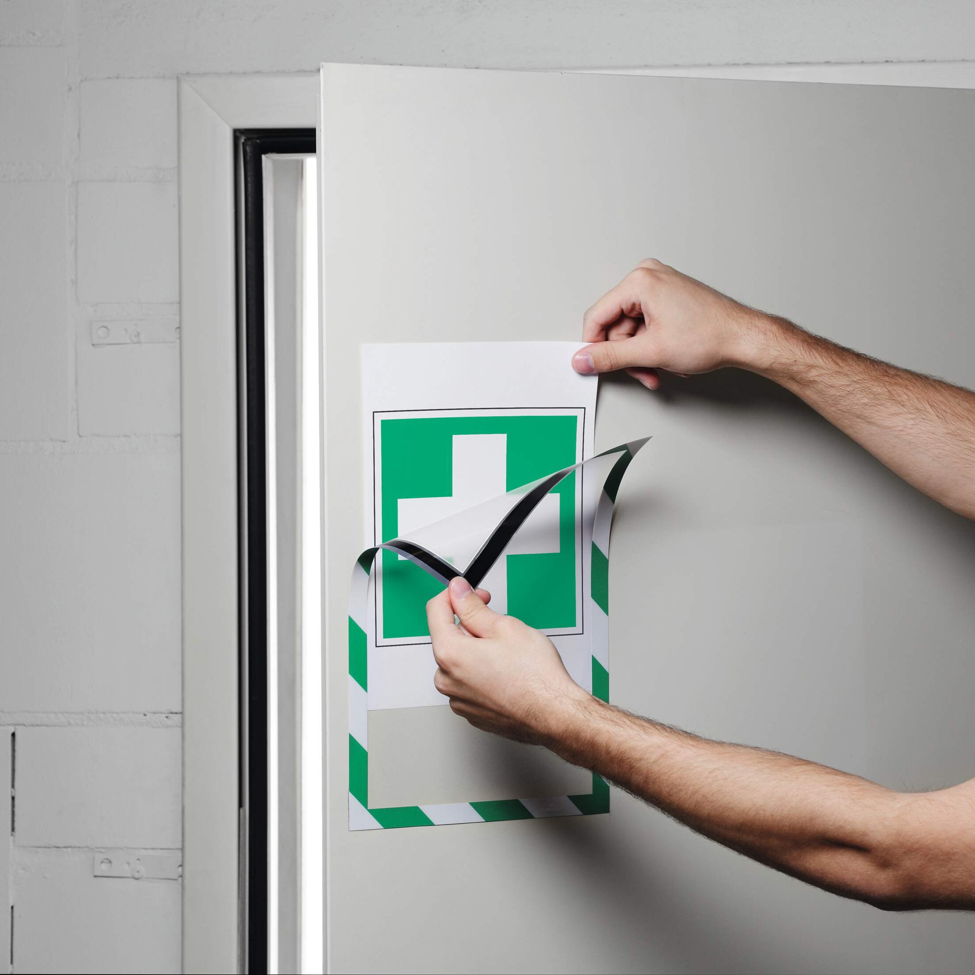 The original fold-back frame. DURAFRAME® SECURITY is the ideal solution for displaying documents and notices on metal surfaces. The inserts can be quickly exchanged simply by lifting the magnetic frame away from the surface.