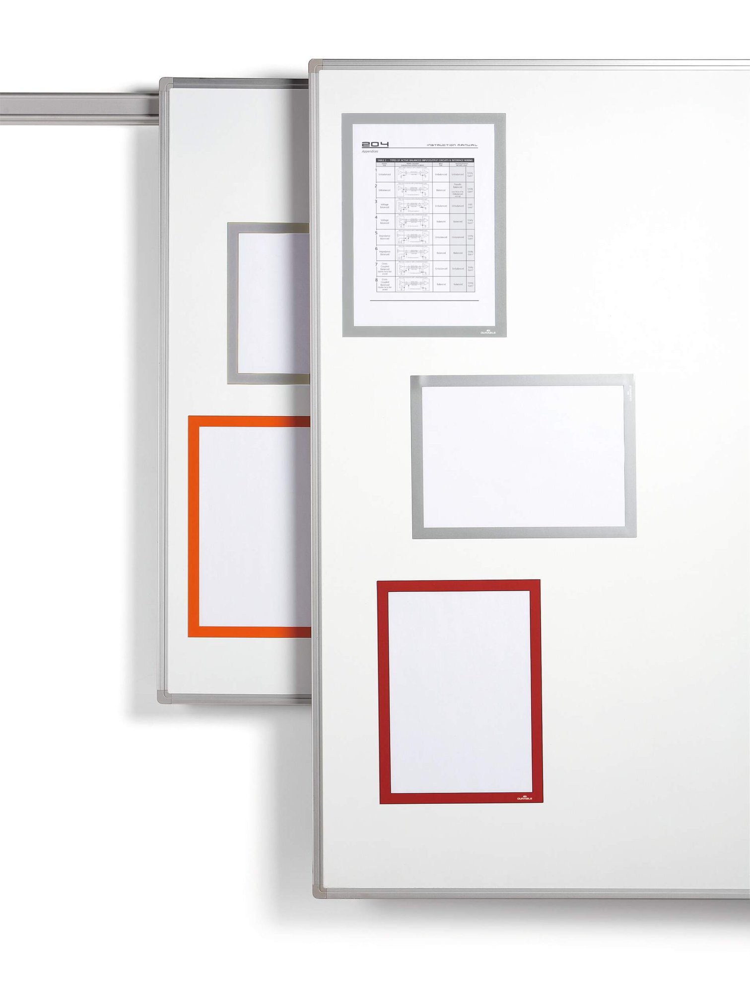 Professional, eye-catching display: Boldly coloured frames with discreet magnetic strips for a clean, sleek look.