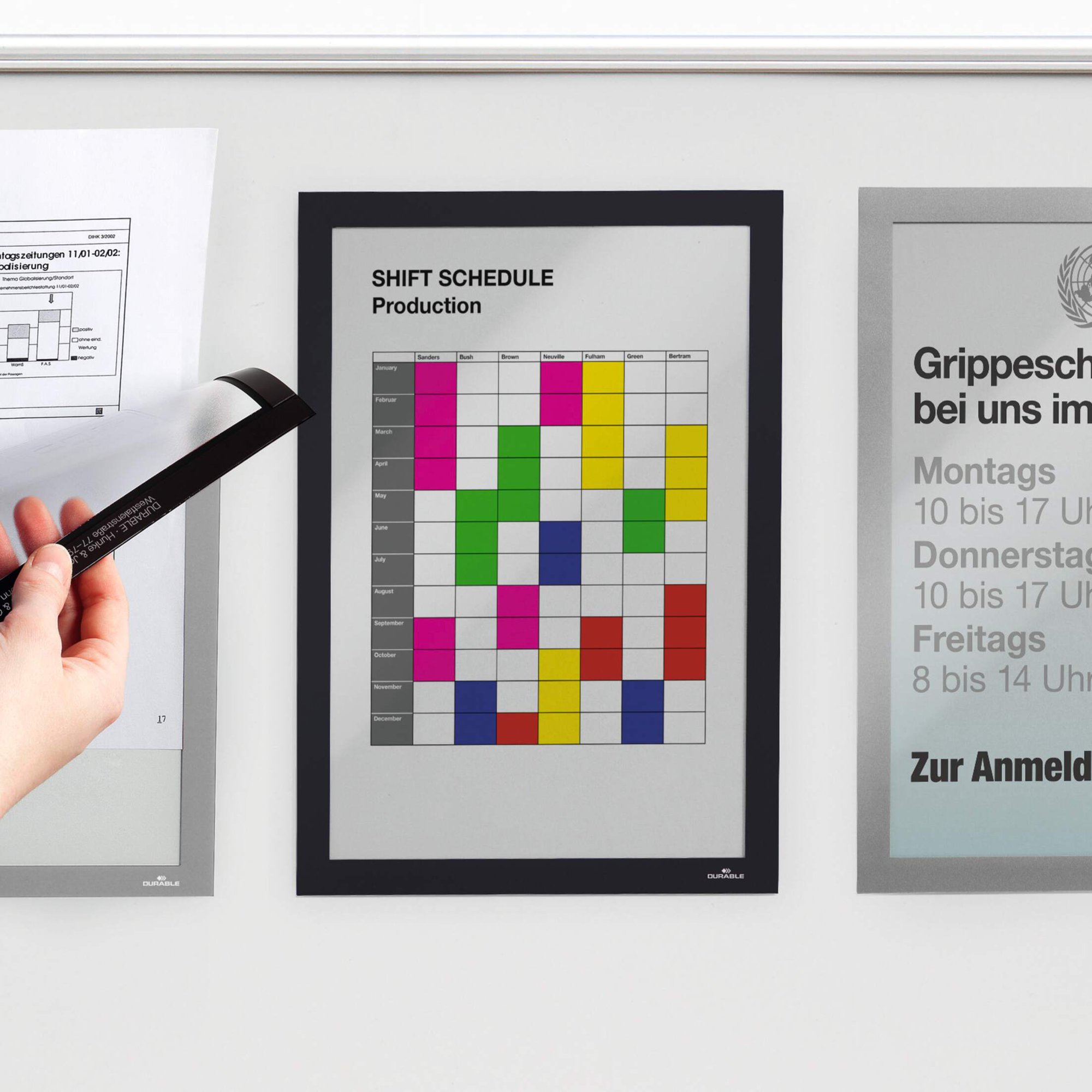 DURAFRAME® MAGNETIC – the ultimate solution for displaying documents and notices on metal surfaces with style and ease. Effortlessly swap inserts by simply lifting the magnetic frame, making updates quick and seamless. Designed in Germany and crafted in Europe, DURAFRAME is the UK’s top choice for a reason.