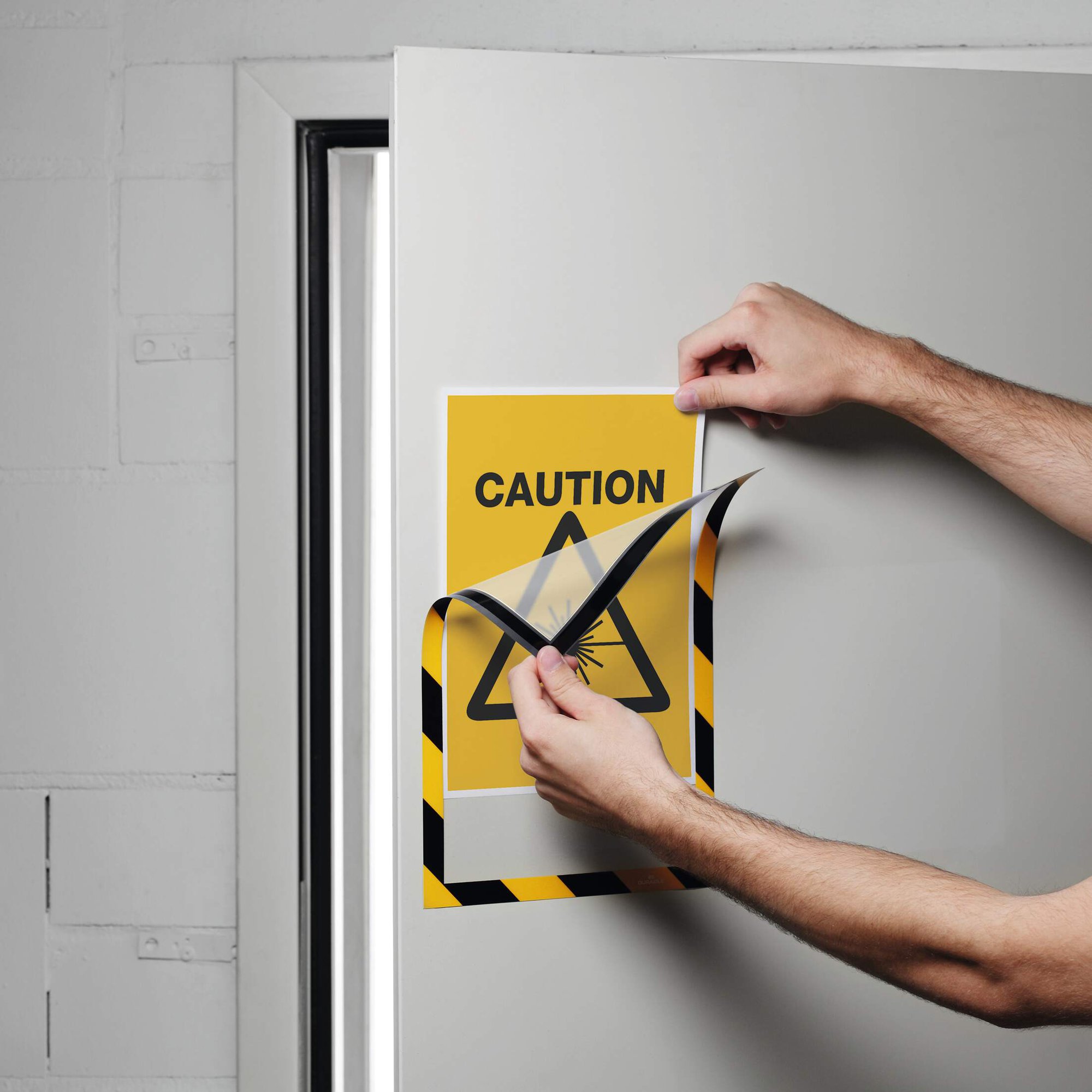 The original fold-back frame. DURAFRAME® SECURITY is the ideal solution for displaying documents and notices on metal surfaces. The inserts can be quickly exchanged simply by lifting the magnetic frame away from the surface.