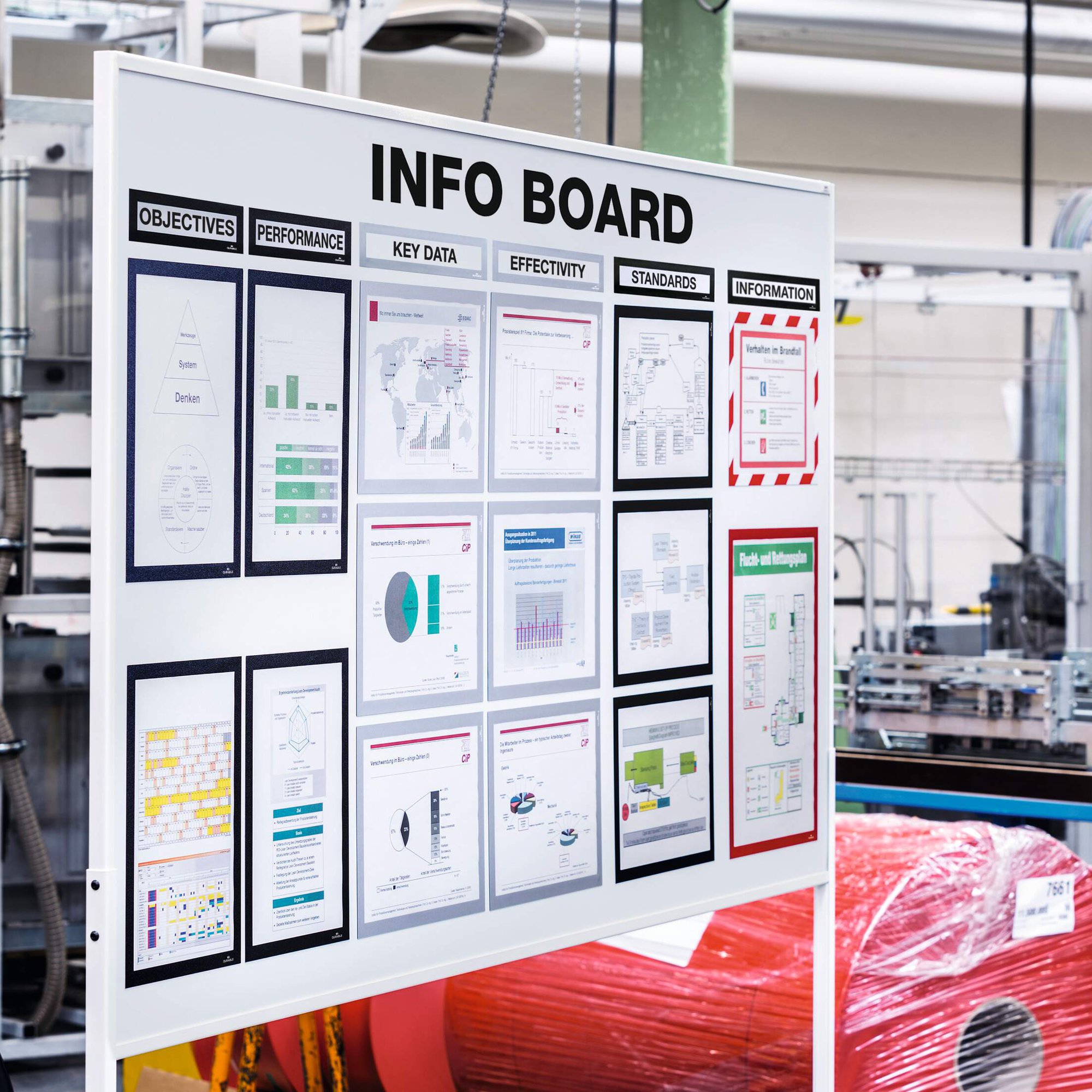 The magnetic info frame DURAFRAME® TOP for headings is ideal for structuring information on whiteboards. Present information in a premium and professional way. Quick and easy exchange of documents by simply lifting the magnetic frame away from the surface.