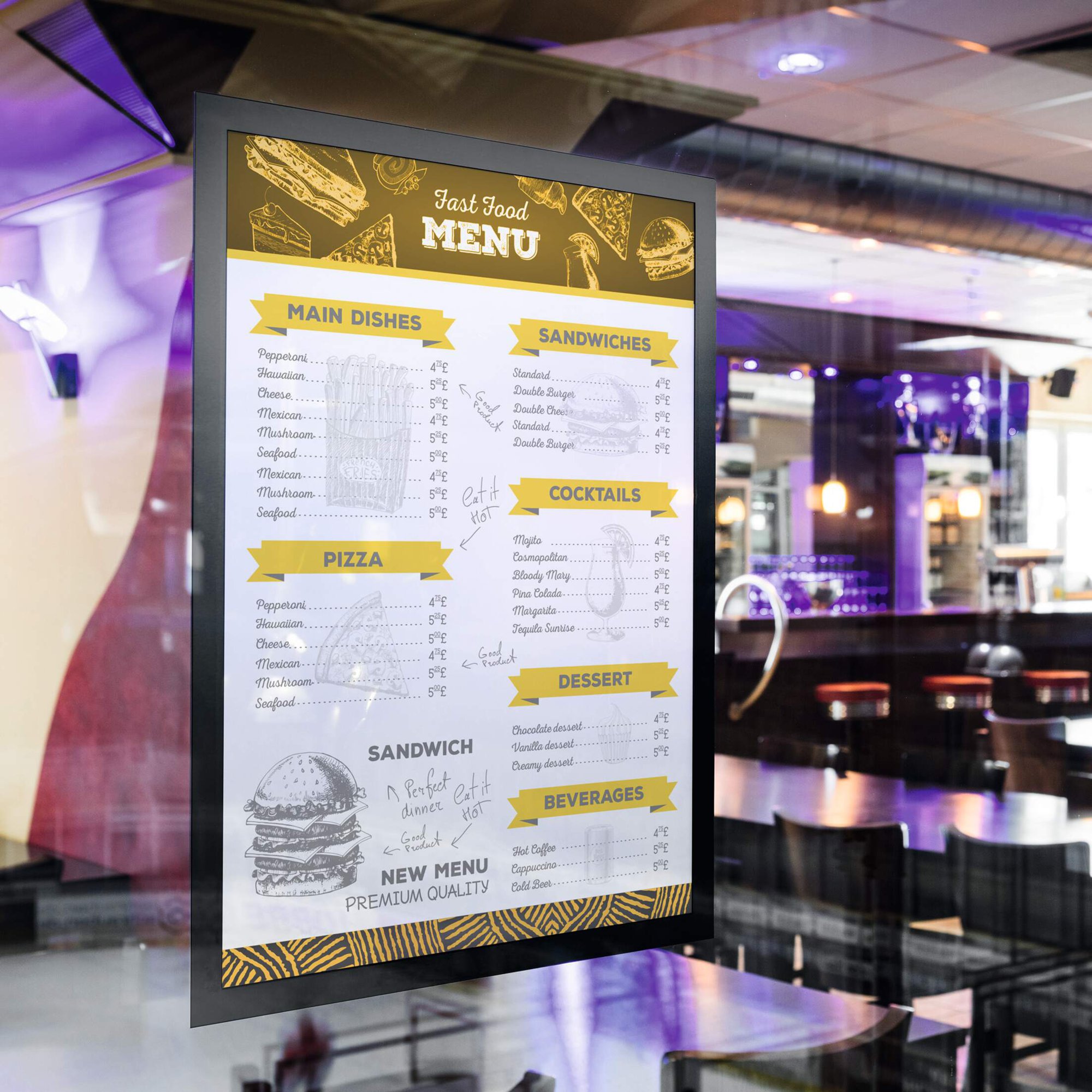 • APPLICATIONS – DURAFRAME is the ideal signage solution for displaying large poster displays such as seasonal promotions, in retail shop windows, restaurants and hotels, etc