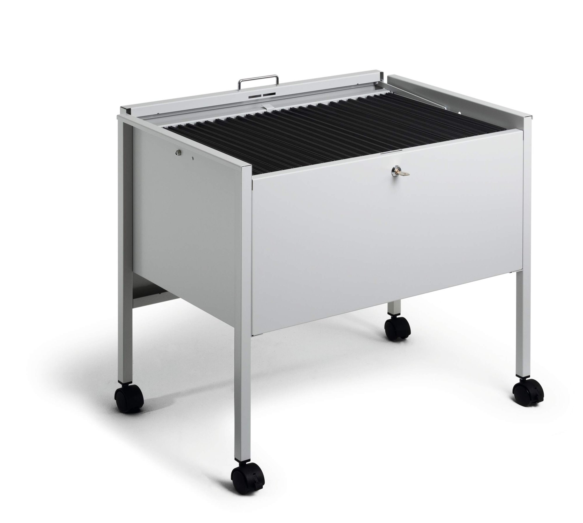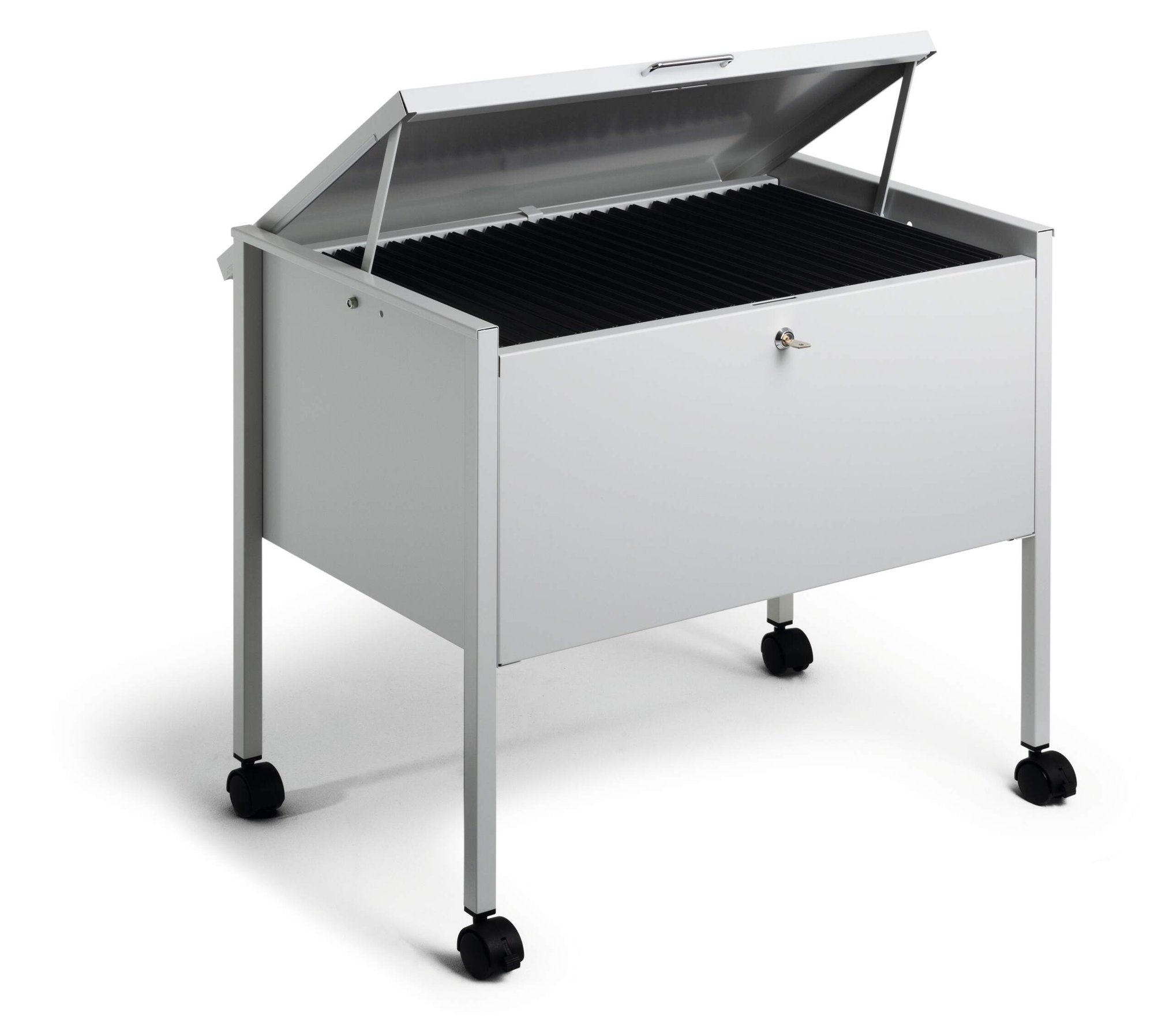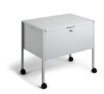 Introducing Durable’s suspension file trolley ECO designed for security and efficiency. With a lockable GDPR compliant lid, it’s made of durable, scratch-resistant epoxy polyester coated steel. Equipped with four castors, including two with brakes, it offers smooth and stable manoeuvrability for effortless file transportation in any workspace.