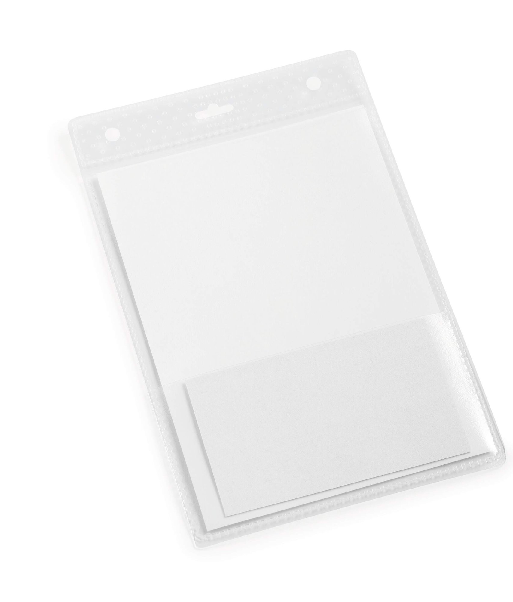 Clear polypropylene foil security name badges in landscape format with universal punching. Scan safe and compatible with barcode and QR scanners. Perfect for ID cards, hotel cards, credit cards, name tags, drivers licences, HID cards and admission tickets.