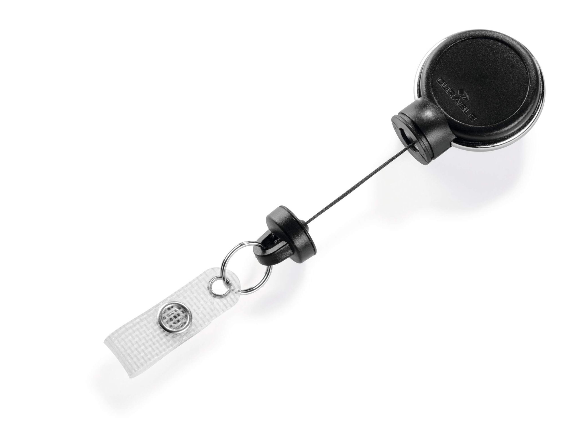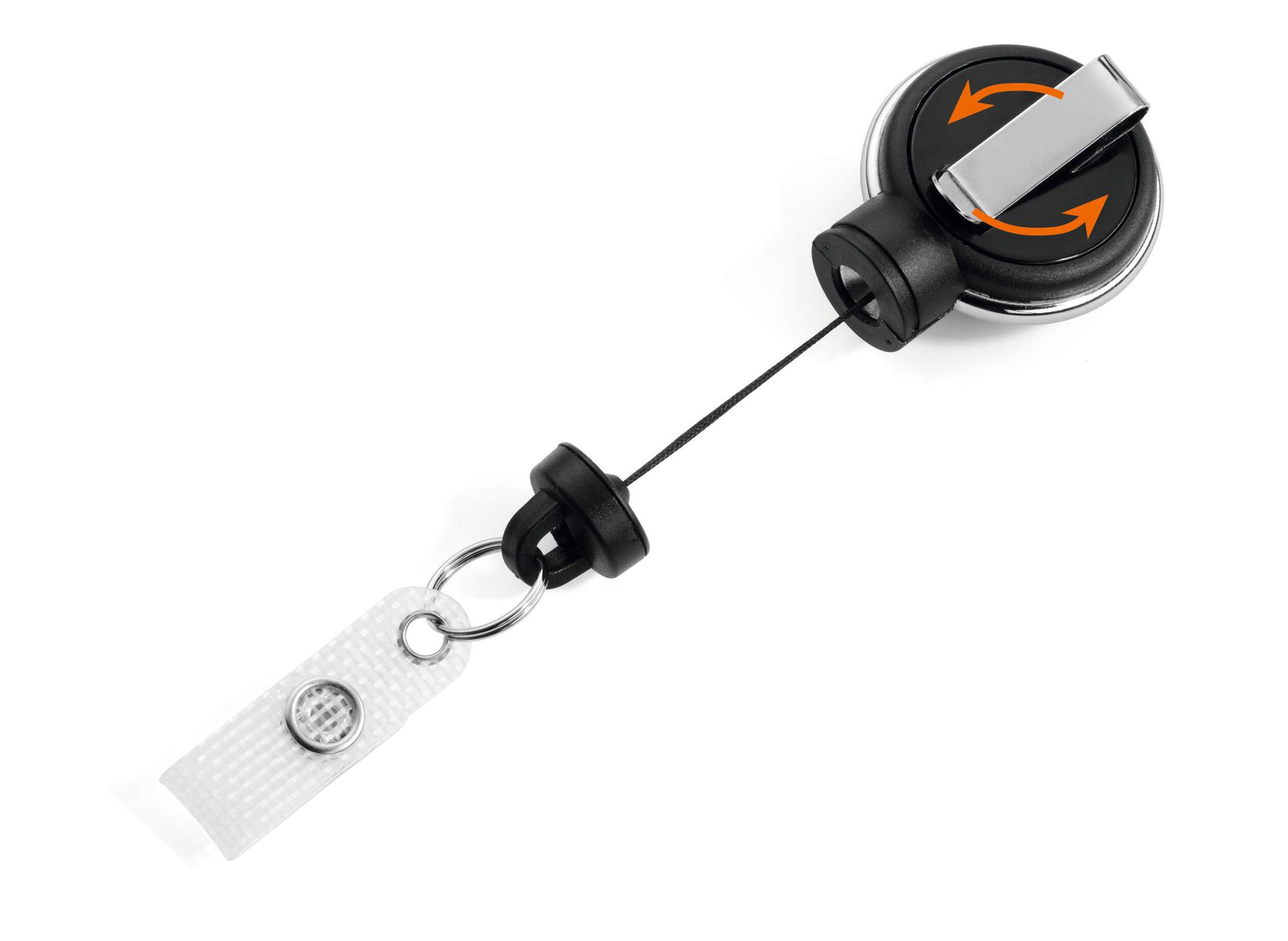 Extra strong German-designed carabiner badge reel with reinforced stud loop fastener perfect for heavy card holders and large sets of keys. The reel features a secure integrated carabiner for attaching to belt loops. Perfect for workplaces with high levels of security.