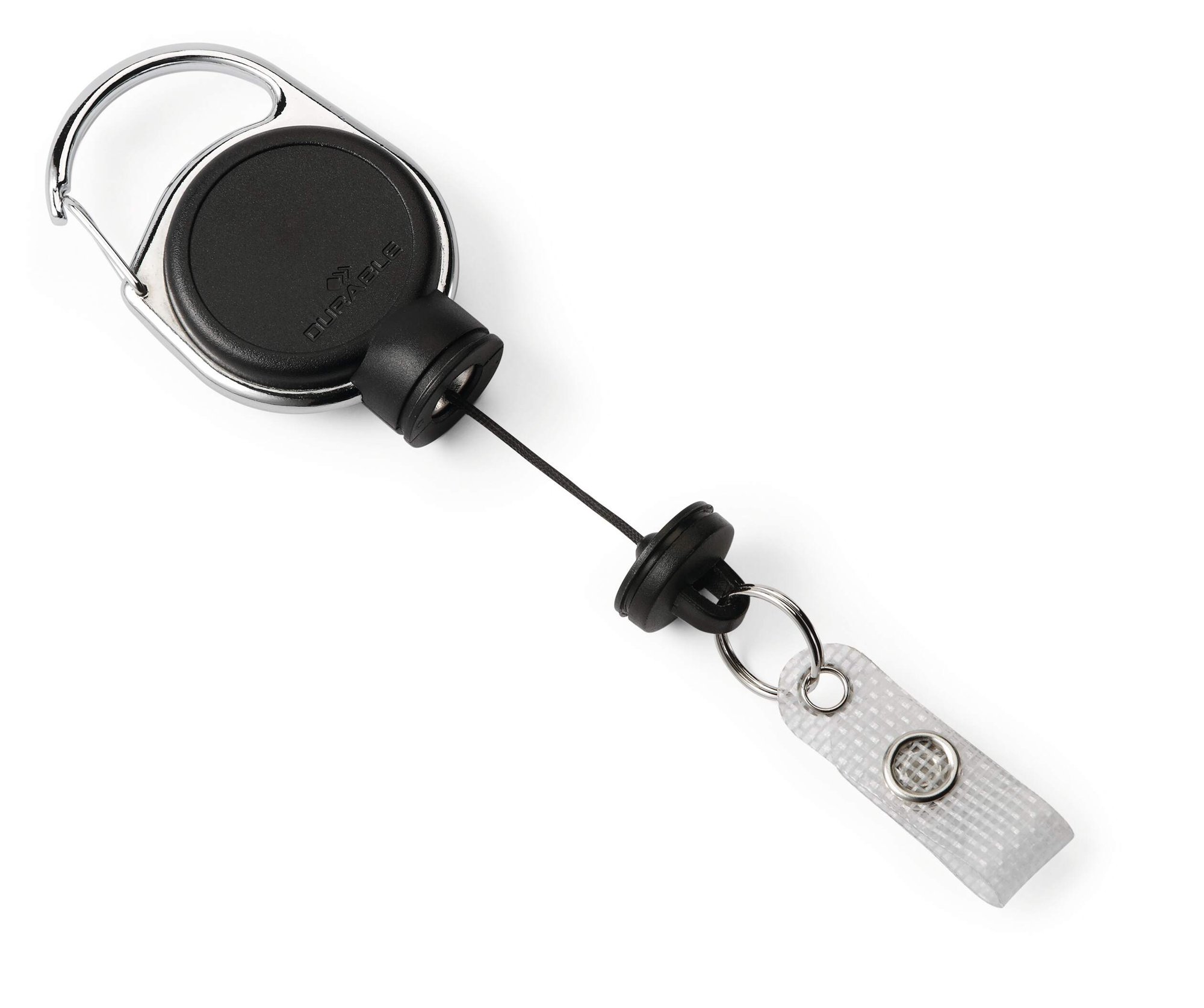 Extra strong German-designed carabiner badge reel with reinforced stud loop fastener perfect for heavy card holders and large sets of keys. The reel features a secure integrated carabiner for attaching to belt loops. Perfect for workplaces with high levels of security.