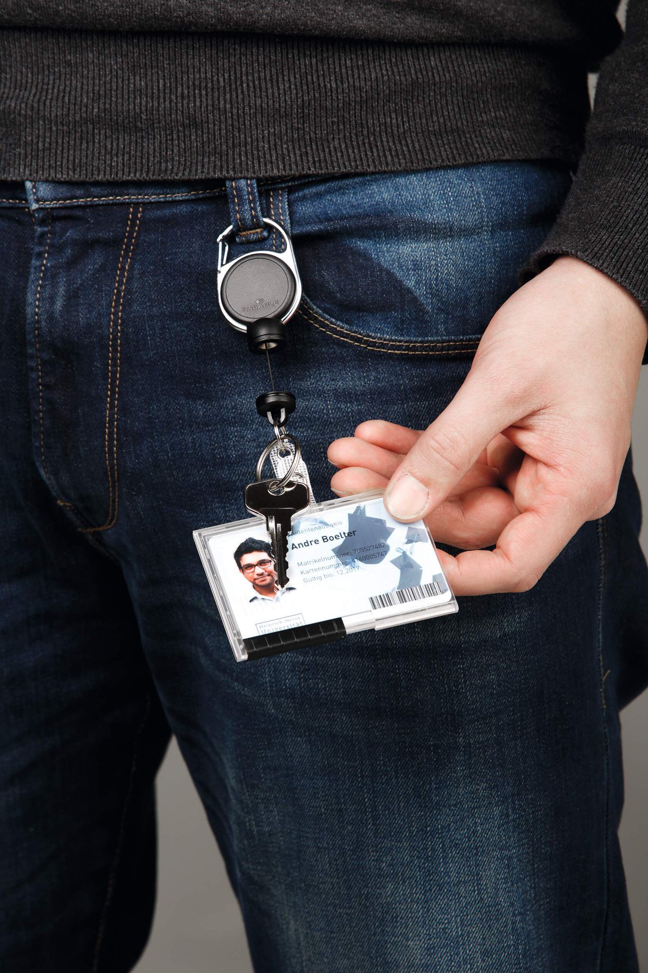 Extra strong German-designed carabiner badge reel with reinforced stud loop fastener perfect for heavy card holders and large sets of keys. The reel features a secure integrated carabiner for attaching to belt loops. Perfect for workplaces with high levels of security.