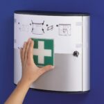 Conveniently located on the wall for quick access in emergencies, it saves valuable floor space while ensuring readiness for any medical situation.