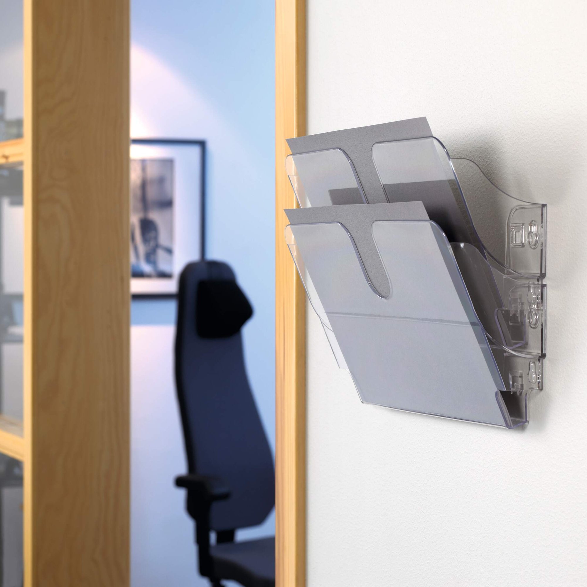 Set of 2 modular literature holders perfect for displaying and presenting documents in A4 format. Made of strong plastic and can be installed and mounted to flat load-bearing surfaces in a matter of moments. The document holder can be easily extended to add further slots for a flexible future-proof solution
