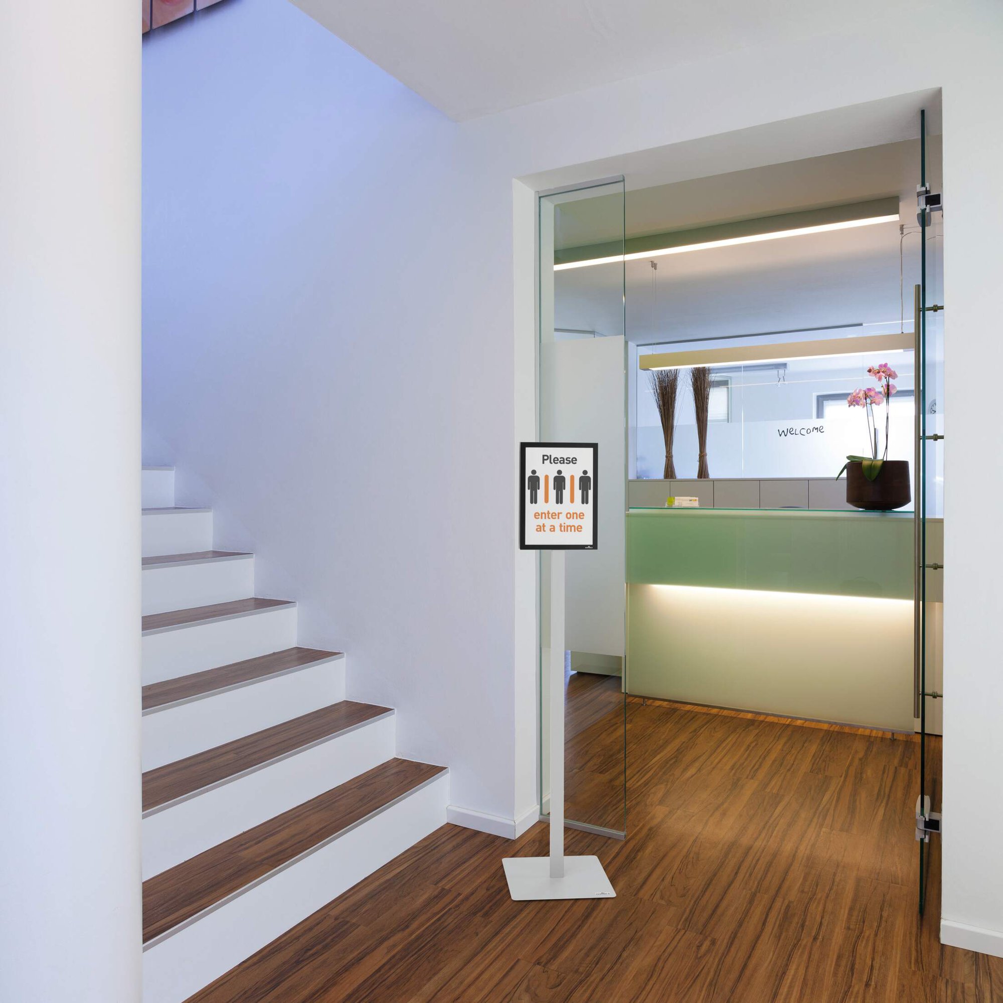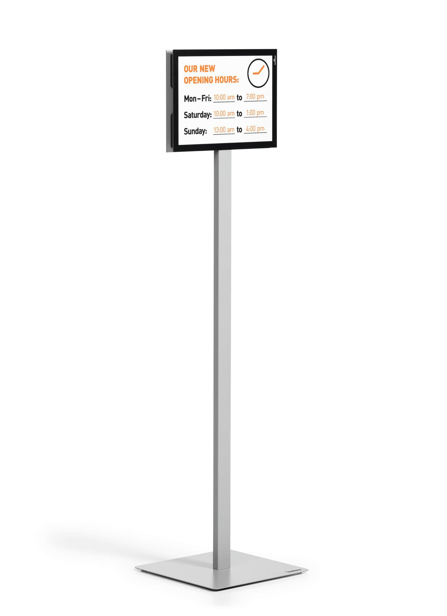 The INFO STAND BASIC floor stand is the simple way to present information in a wide range of application areas and can be used as a wayfinding system due to its double-sided readability. Information is quick and easy to exchange, thanks to the use of our DURAFRAME magnetic signage frames.