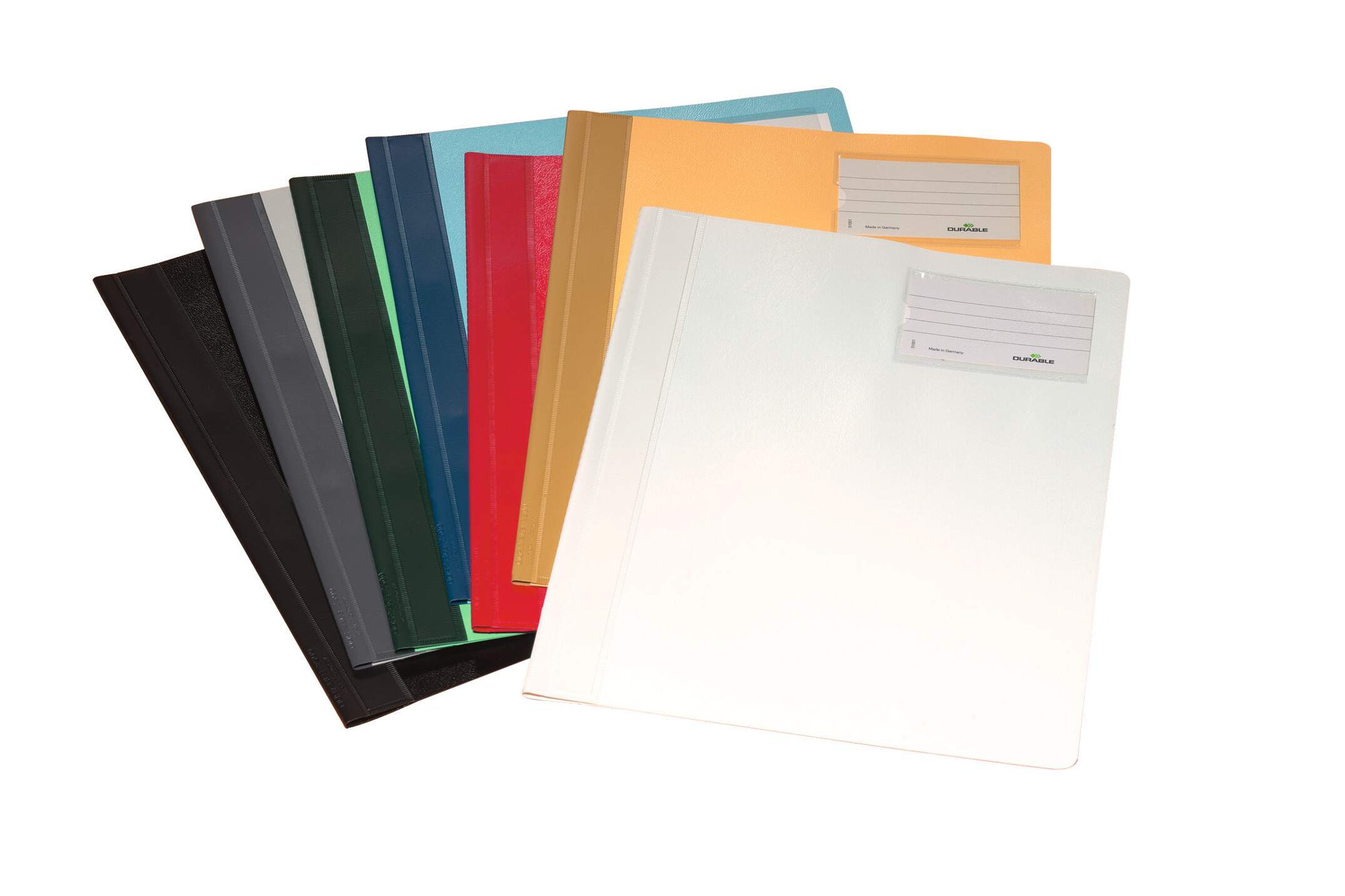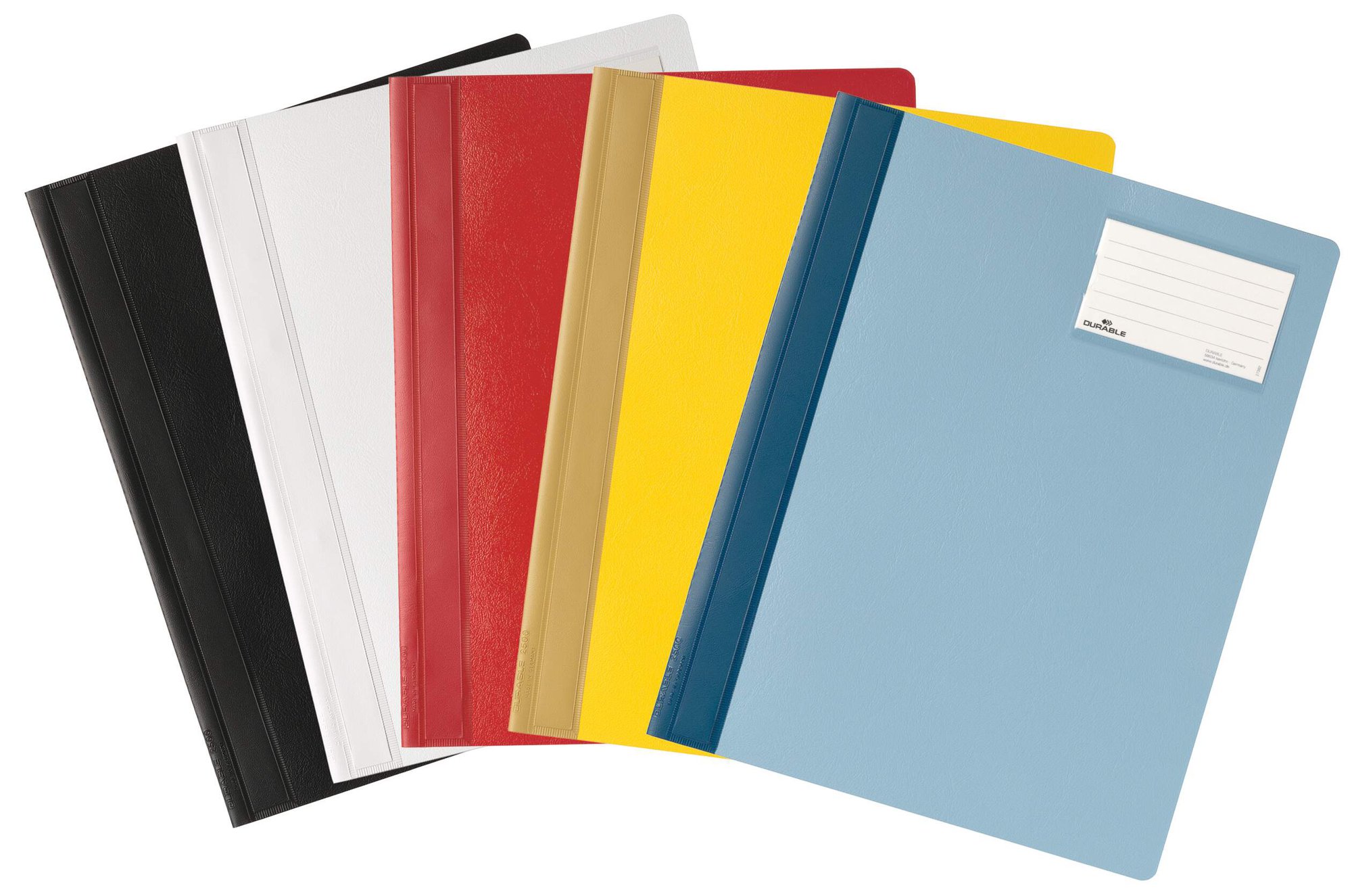 Professional project folder with coloured covers and a transparent inner pocket for storing unpunched files. The plastic-coated stapling mechanism with end caps makes inserting documents a breeze and keeps them secure.