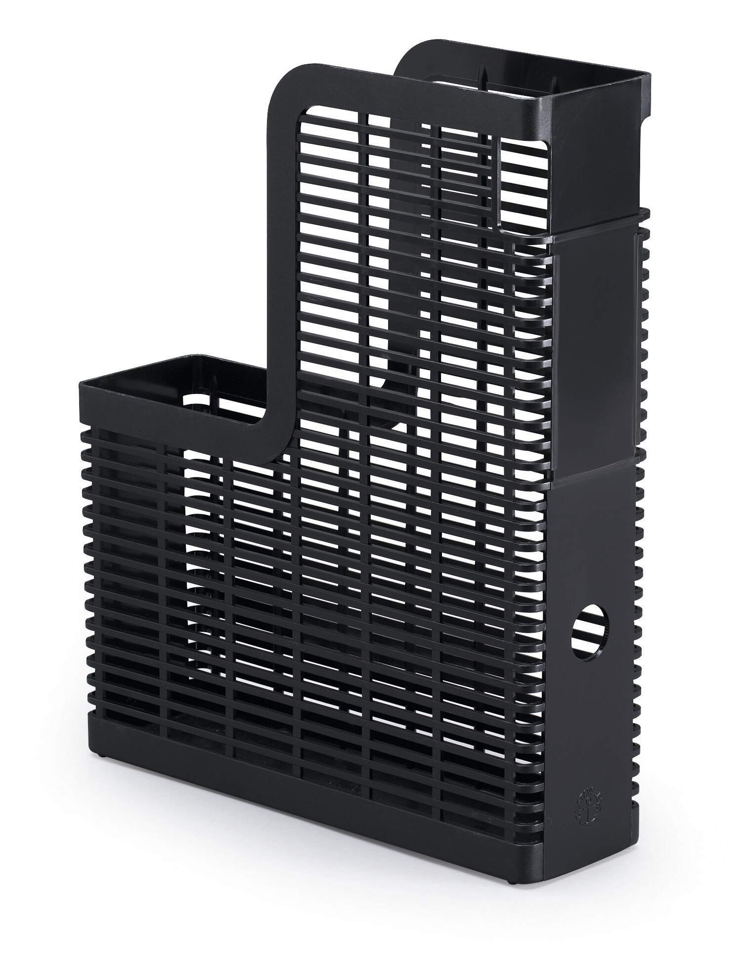 The Durable OPTIMO Magazine Rack in grey combines eco-conscious construction with modern practicality, offering a stylish solution for organising A4 catalogues, brochures and documents. Built from 80% post-consumer recycled plastic and 100% recyclable, it meets the high standards of the Blue Angel ecolabel, one of Europe’s most trusted environmental certifications.