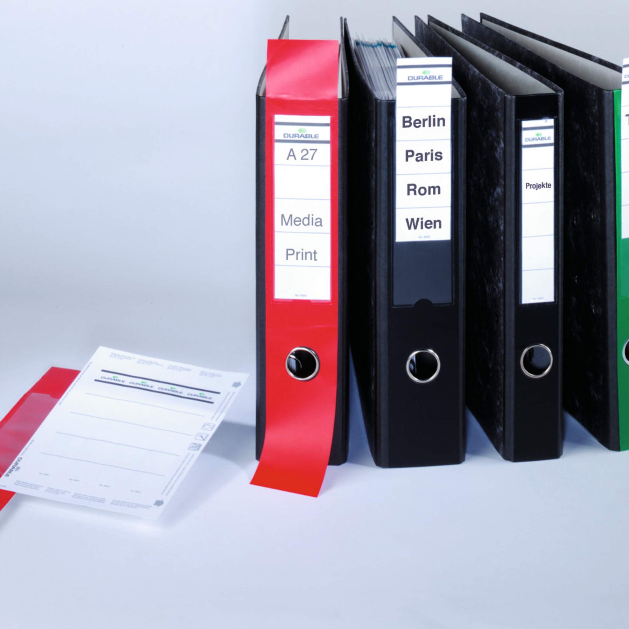 • REMOVABLE INSERTS – Provided with removable blank insert sheets that are PC-printable using Durable’s free online DURAPRINT software
