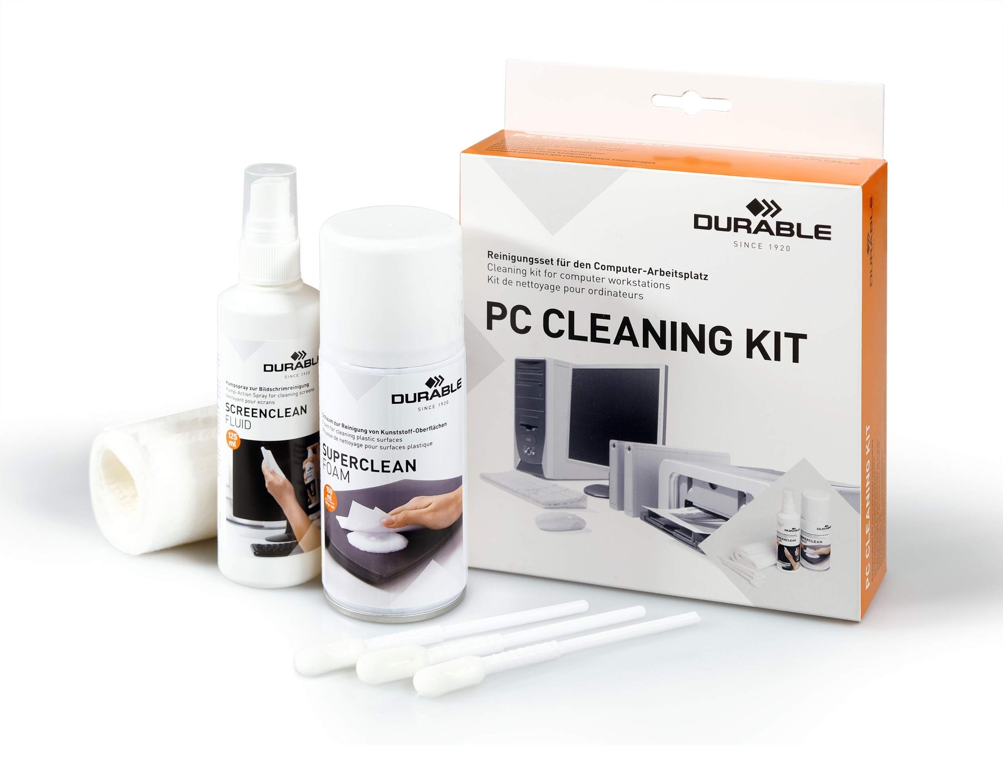 PC cleaning kit which contains everything you need to keep your workstation clean and tidy. Each kit includes 1 150ml bottle of surface cleaning foam, 1 125ml bottle of SCREENCLEAN fluid, 10 absorbent wipes and 1 keyboard cleaning tool.