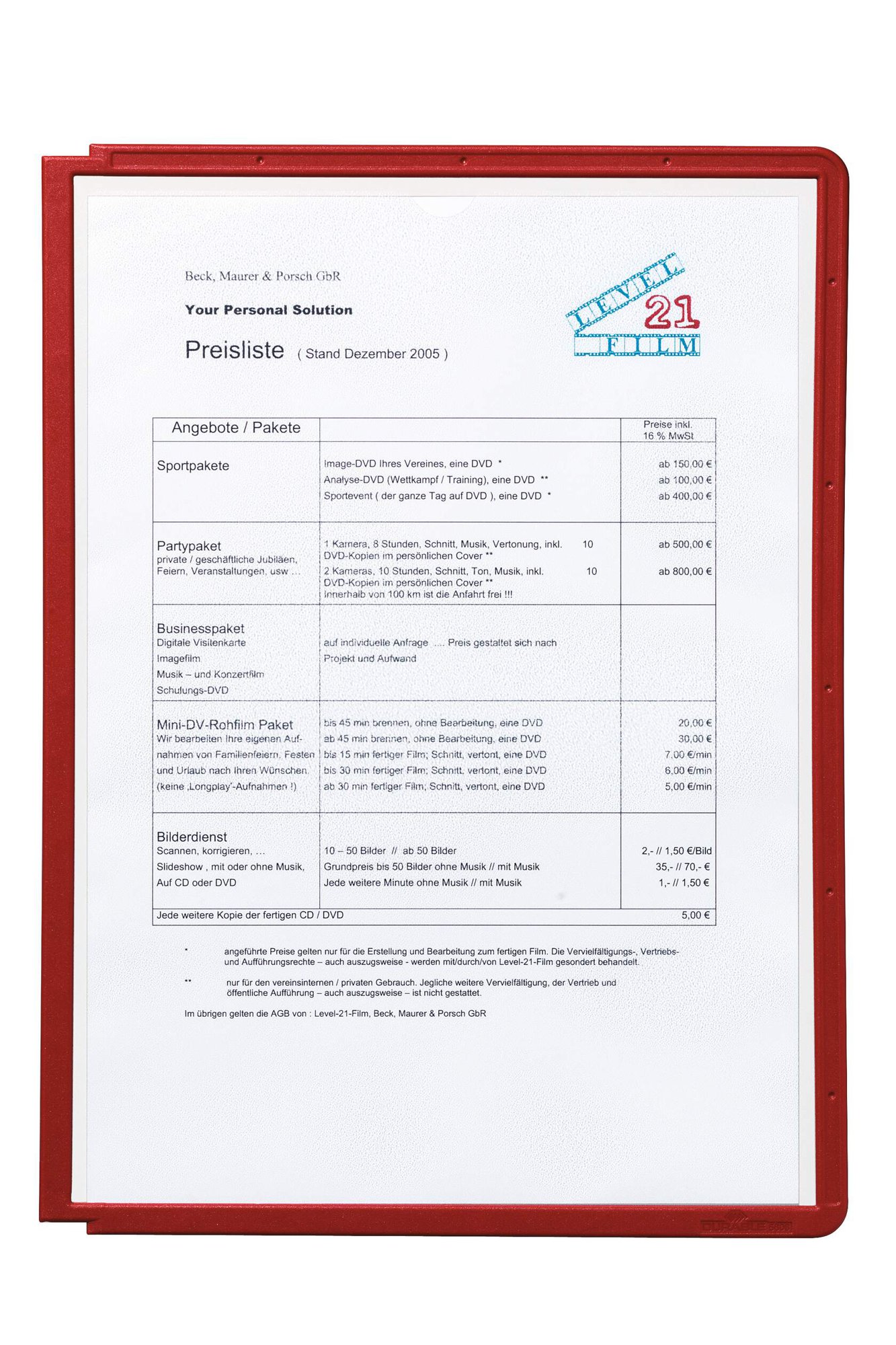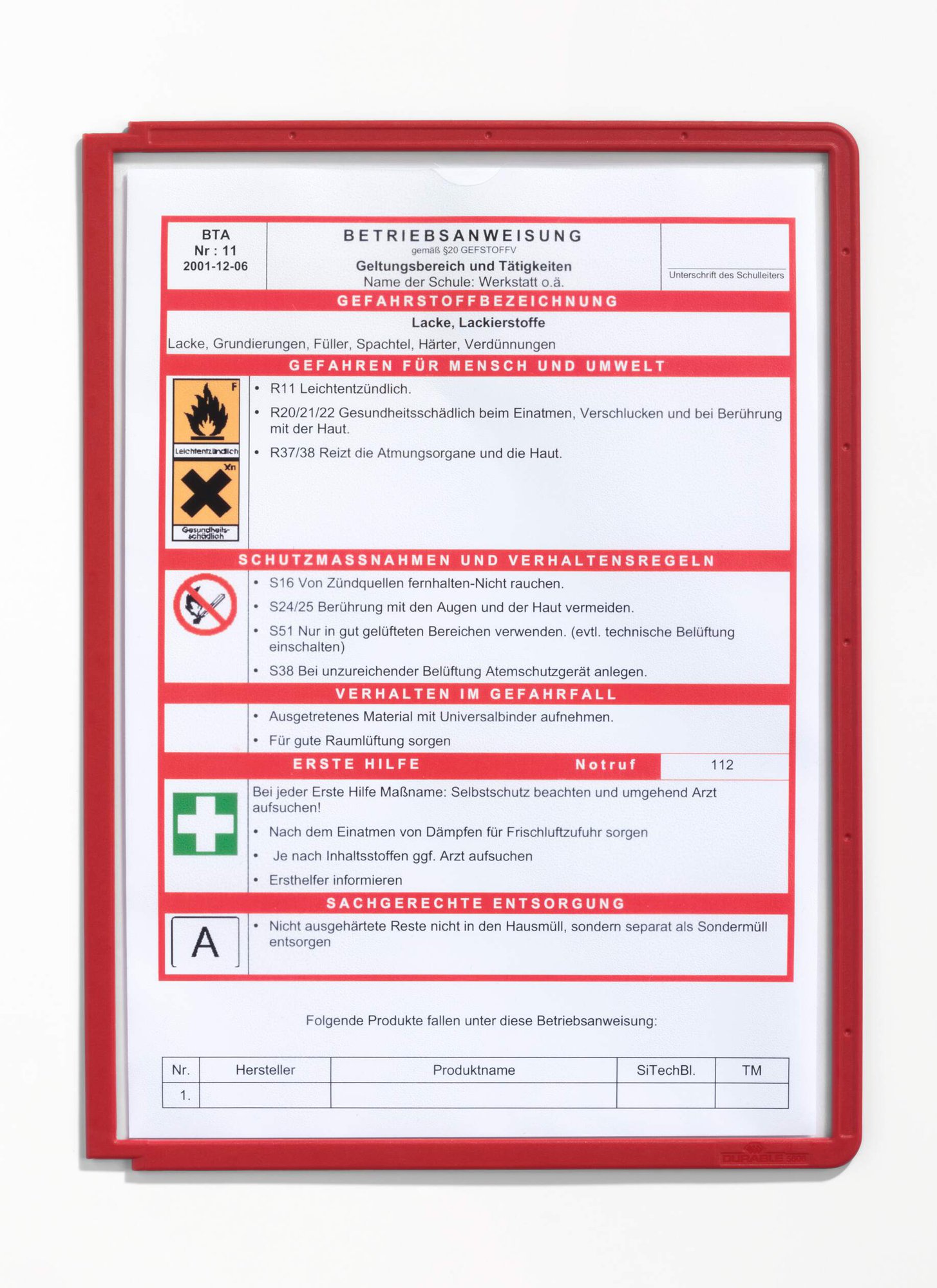 Durable SHERPA Display Panel A4 Red