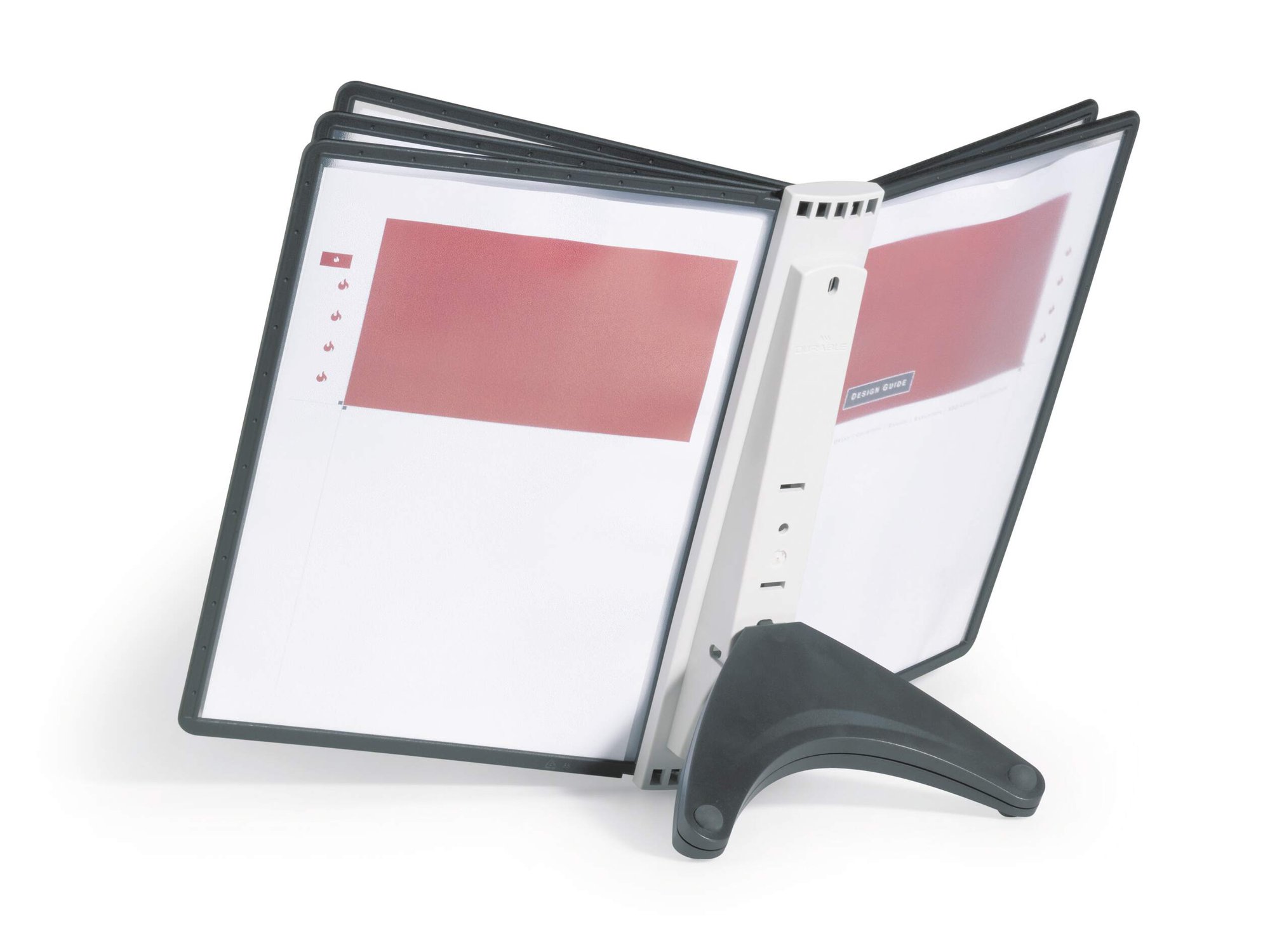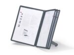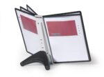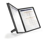 The DURABLE SHERPA® range is a stylish display panel system range with a sturdy base. Perfect for use in a showroom, office, etc. This desk unit includes 5 black A4 double sided panels for holding up to 10 documents. The panels are anti-glare and copy-proof which makes it easy to use.
