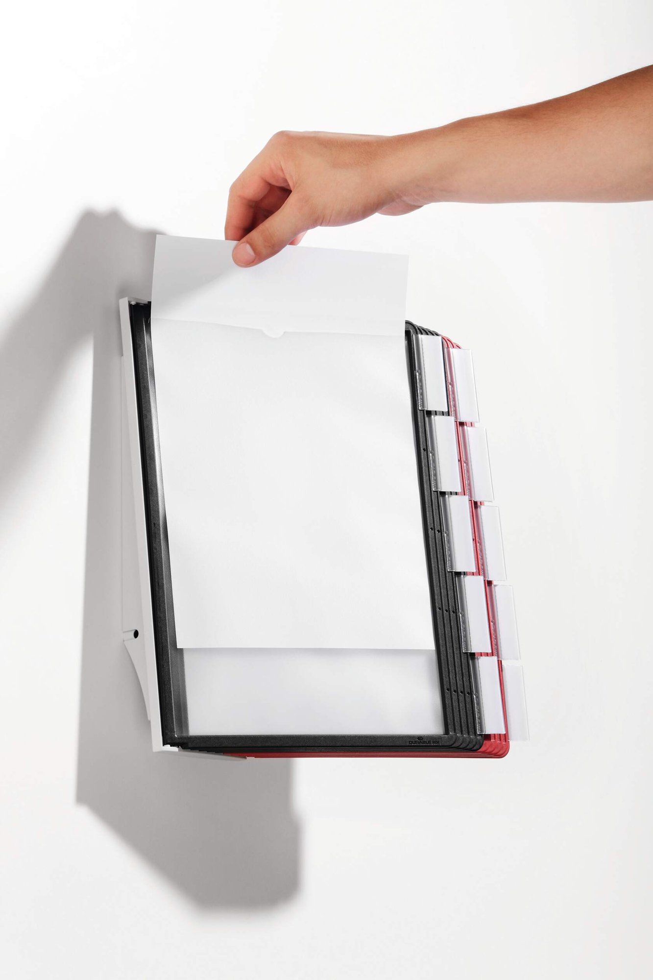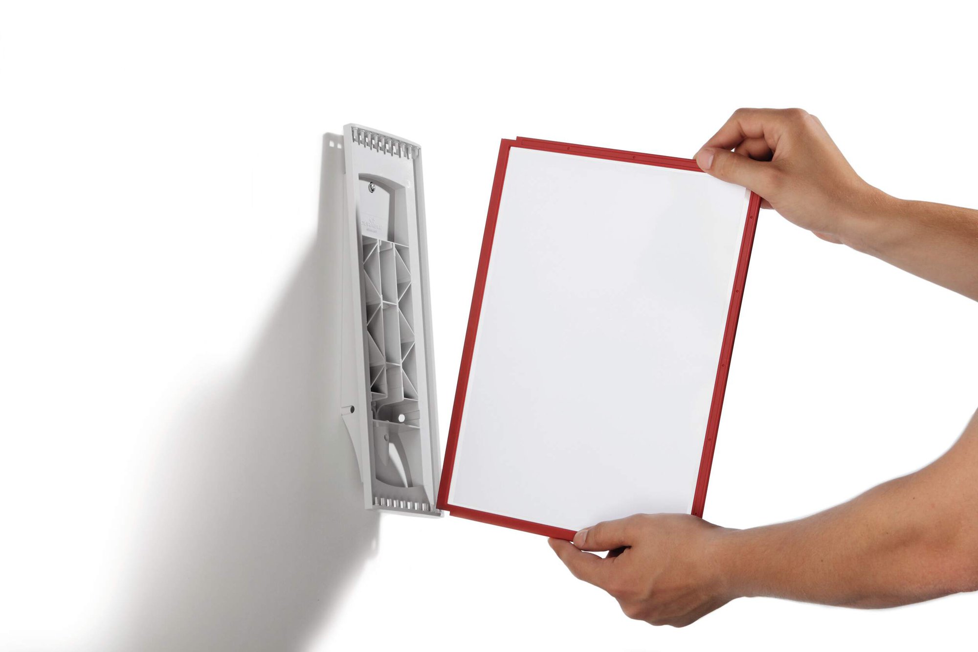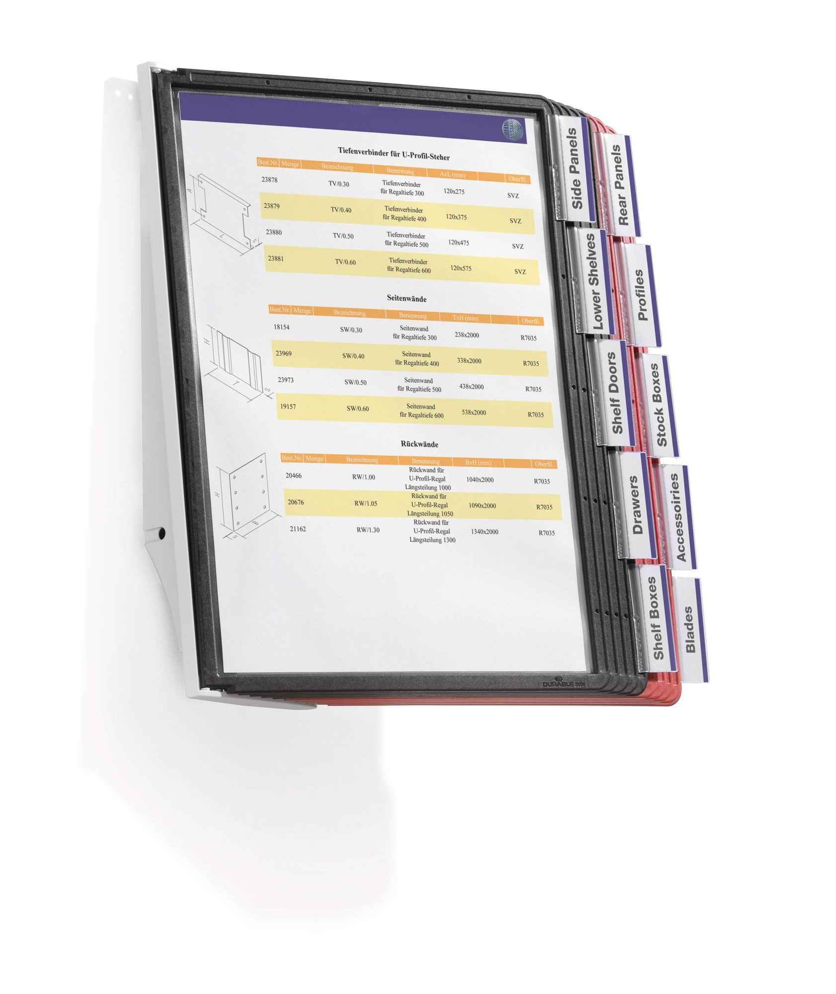 The DURABLE SHERPA® range is a stylish display panel system range with a sturdy base. Perfect for use in a showroom, office, etc. This wall unit includes 10 A4 display panels (Assorted) poor holding documents. The panels are anti-glare and copy-proof which makes it easy to use. Great for holding price lists, product information, frequently used telephone numbers, etc.