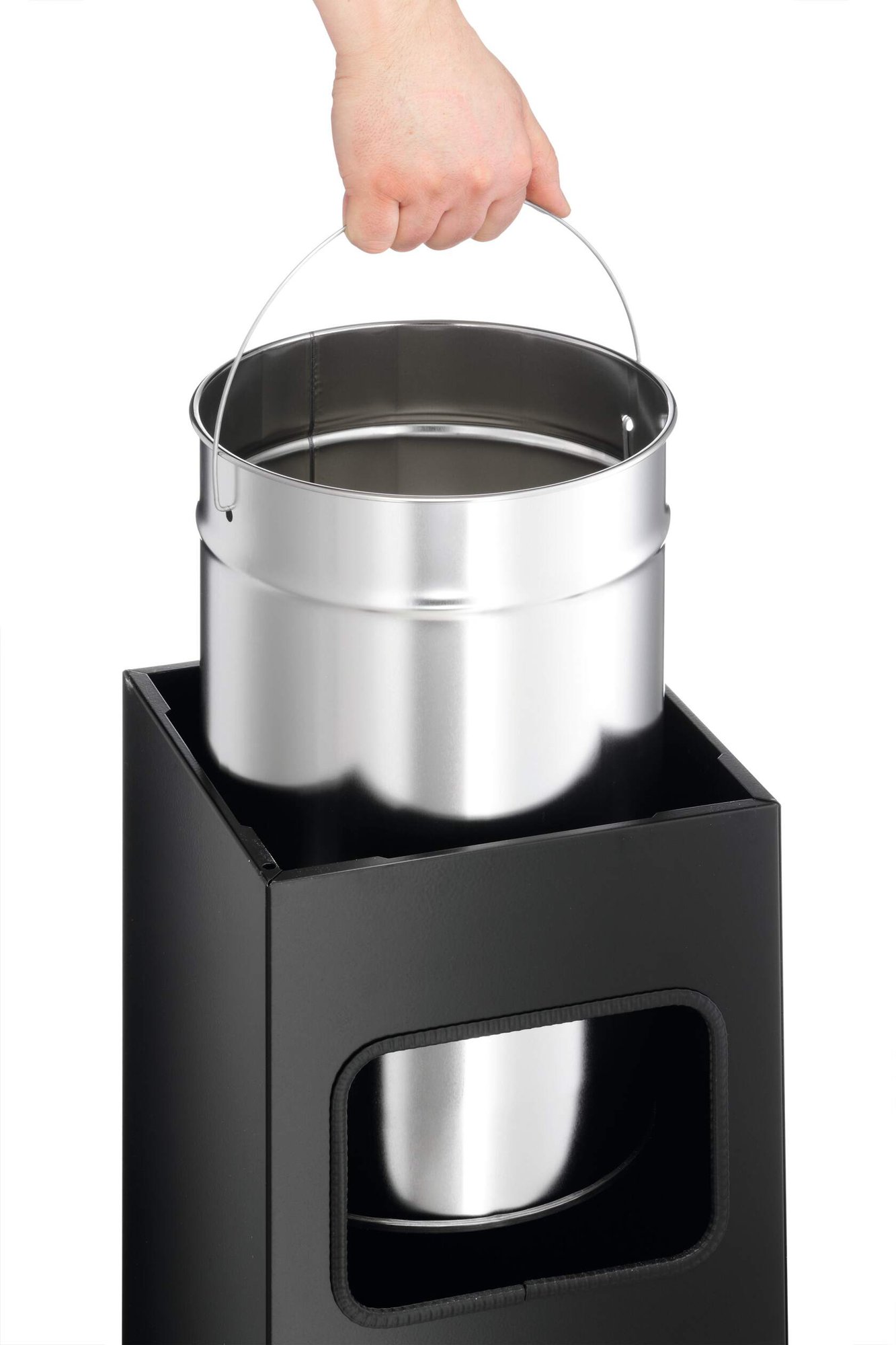 Introducing our 17L integrated ashtray bin, a smart solution for keeping covered outdoor spaces clean and accommodating smoking needs. With a removable aluminium insert, cleaning is a breeze. Durable and sleek, it fits seamlessly into any environment, ensuring a tidy and organised space. Say goodbye to scattered cigarette butts with this convenient and stylish solution.