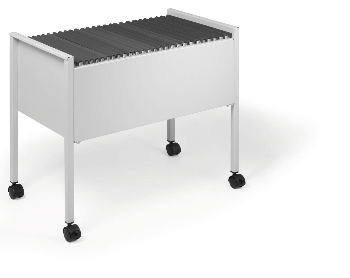 Introducing Durable’s suspension file trolley ECO designed for efficiency and mobility. With a capacity for 80 A4 suspension files, it’s made of durable, scratch-resistant epoxy polyester coated steel. Equipped with four castors, including two with brakes, it offers smooth and stable manoeuvrability for effortless file transportation in any workspace.