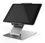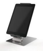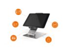 A modern and stylish table top tablet holder in Silver which is perfect for any environment. The tablet holder securely holds tablets from 7 to 13″ and includes an anti-theft system to prevent unauthorised removal of the tablet.