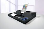 Enhance your productivity, save space and improve your organisation with a smart VARICOLOR® desk organiser. The modern design features a rubber coated phone and tablet holder with integrated cable management and hidden compartment to keep your workspace clean and tidy.