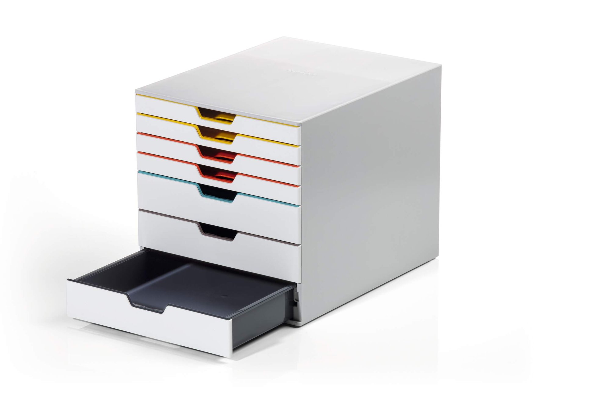 Durableās contemporary VARICOLORĀ® MIX drawer box is made of premium-quality plastics with 7 silent smooth-operating drawers. Say goodbye to large filing cabinets and enhance your organisation with colour coloured draws giving you more space for the things you love.