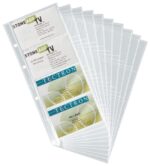 10 Strong transparent VISIFIX® polypropylene pockets for business and credit cards. The sleeves are universally punched for use in all ring binders and lever arch files. Anti-glare and anti-tear for improved legibility and durability.