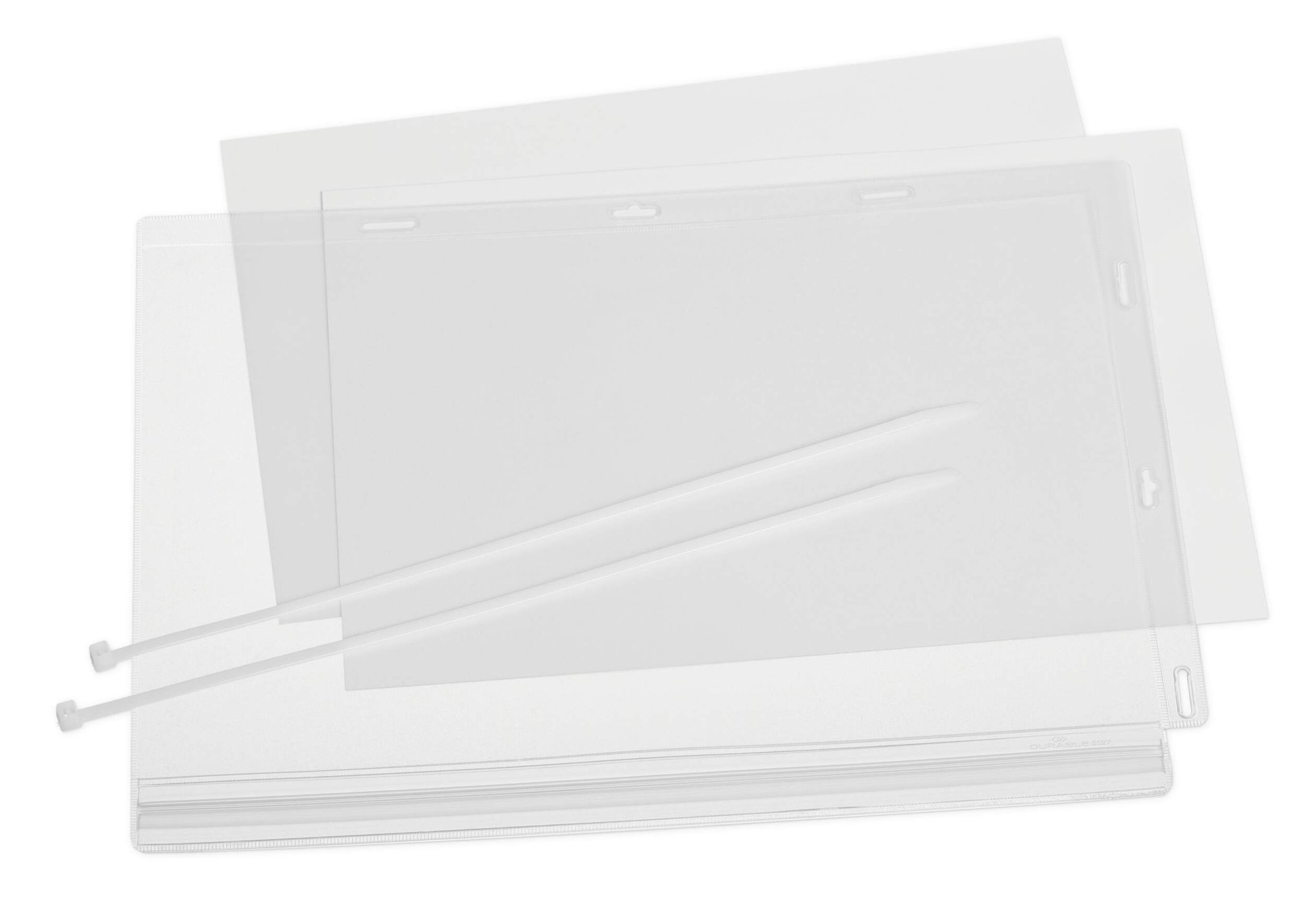 Water-resistant cable tie pockets tested up to IPX5 standards (protection against water jets from all directions). The pockets are UV-stabilized to prevent fading and peeling and feature a scratch-resistant anti-reflective coating for excellent long term legibility.