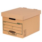 Bankers Box® by Fellowes Earth Series Heavy-duty storage box features a triple layer of board to end panels and double layer to sides and base. Comes with reinforced hand holes resist tearing and make box comfortable to carry. It is compatible with A4 or foolscap transfer files, ring binders, lever arch files and suspension files. The over-sized lid means it can also be used with suspension files. This sturdy, corrugated storage box can also be used to transport files off site or between home and work. When you choose Earth Series you can be rest assured you are picking filing and storage products that don’t cost the earth; the Bankers Box® storage box is made from FSC® certified board and are 100% recyclable. All inks used are water based and adhesives used are solvent free.