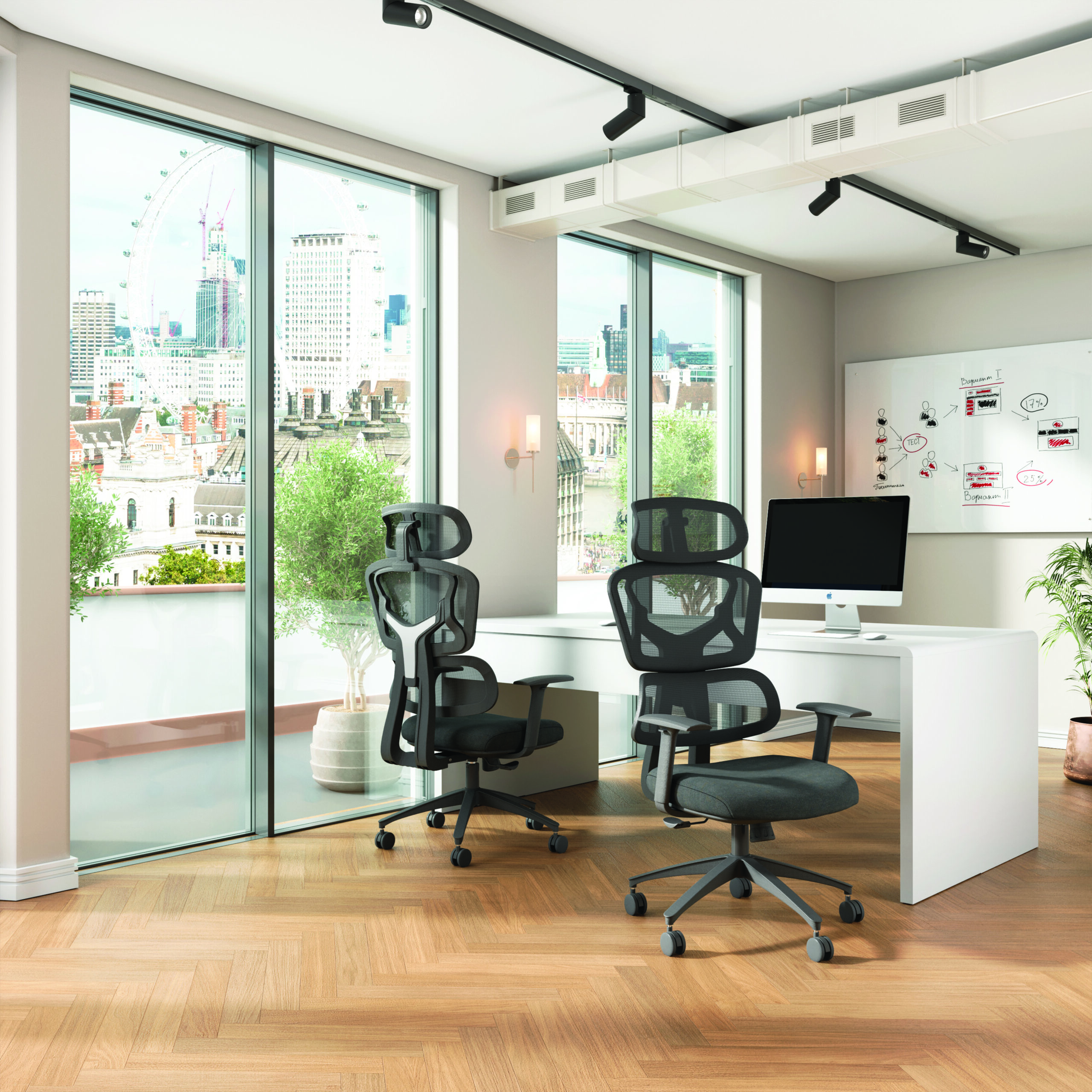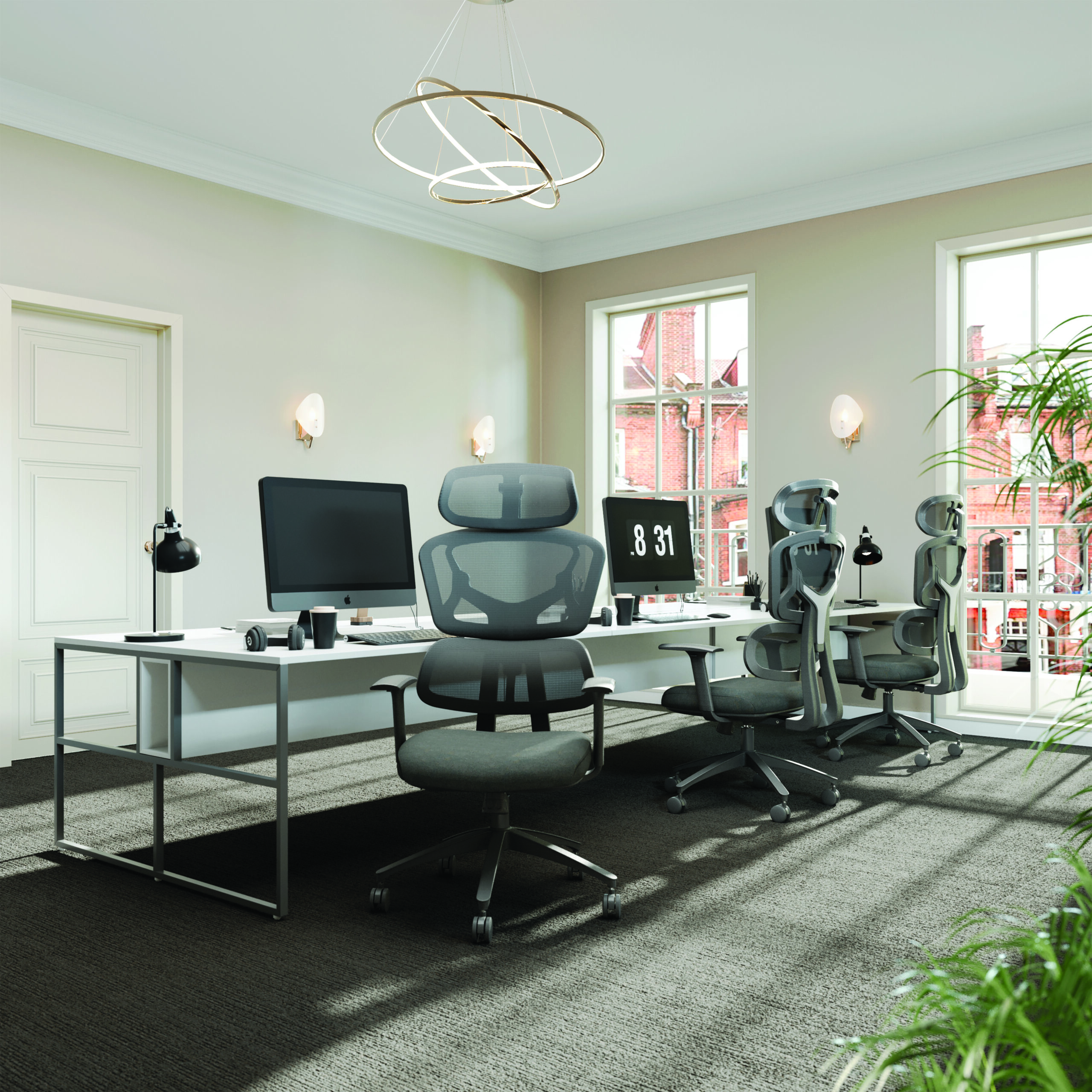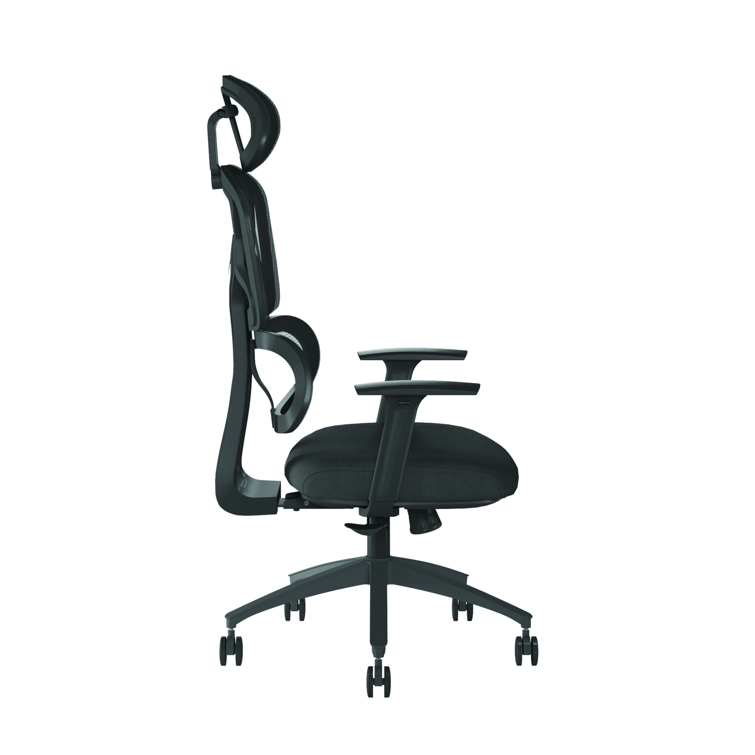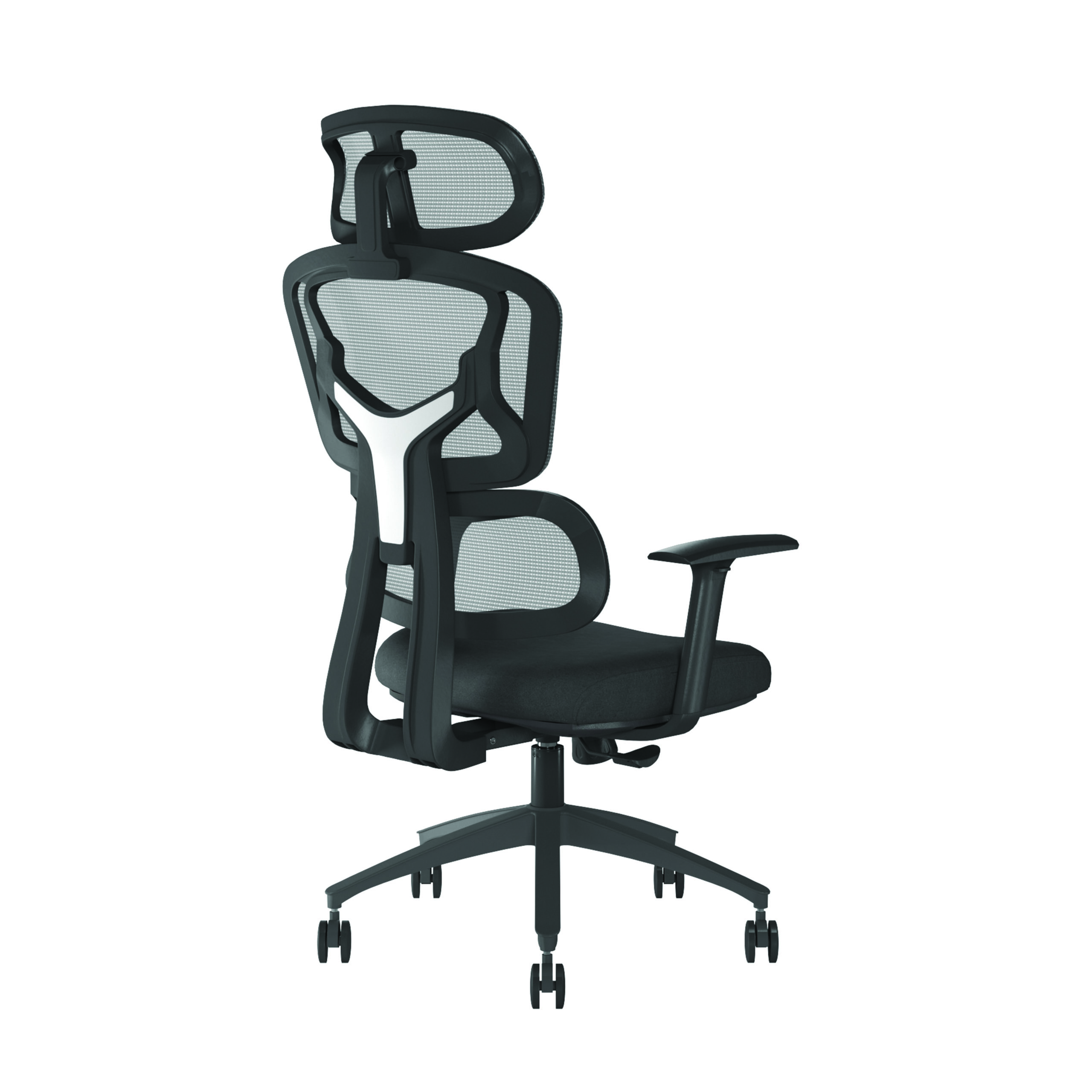 The ultimate ergonomic chair-offering exceptionsal back support via dual panelled curved mesh backrest design-complemented with a matching height and angle adjustable headrest