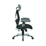 This best selling luxury mesh back executive chair is certified for 24 hour use and is packed with features. with a breathable seat pad, contour curved mesh backrest with stylish black and satin back shell, multi-adjustable lumbar function, soft padded height adjustable armrests, multi-adjustable headrest, tension control – adjustable to suit the user’s bodyweight and a 154kg capacity gas lift offering easy seat height adjustment – all complete with a sturdy and stylish chrome swivel base, this chair is ergonomic and stylish at the right price! You will not be disappointed.