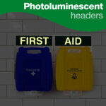 Photoluminescent headers – ensure your first aid point is always visible even in situations where there is smoke or minimal lighting with these photoluminescent headers.