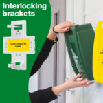 Interlocking brackets – wall-mountable, interlocking brackets not only allow your kits to be immediately visible and easily accessible but also allow you to customise and reconfigure your first aid point to suit the space available should you add additional kits.