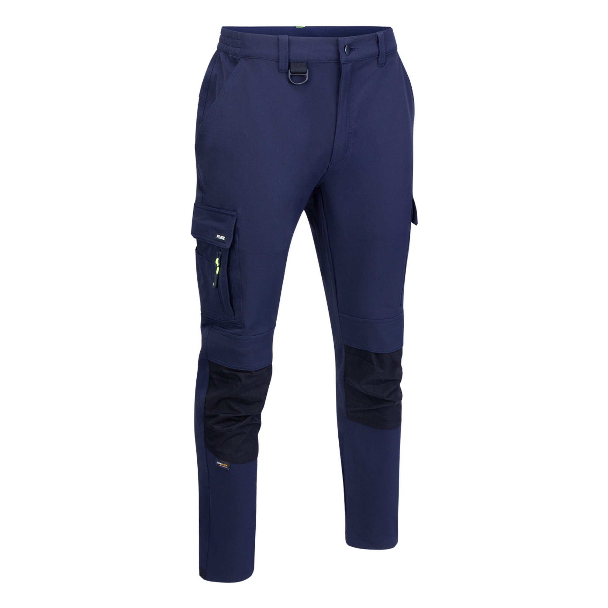 89% Nylon with 11% Spandex outer fabric 225gsm Fabric weight Medium weight trouser Four way stretch fabric Flex stretch fabric allows for a comfortable and functional fit Cordura on heel for harder wearing Cordura fabric to knees Knee pad pouch pockets YKK heavy duty zip Heavy duty button fastener Half elasticated waist for added comfort Five loop belt waistband D ring for security or ID tag Tapered leg for comfort and styling Two angled hip pockets Multipurpose pocket to right thigh Large cargo pocket with hook and loop closure to left thigh Two rear pockets Available in regular, short and tall leg fit