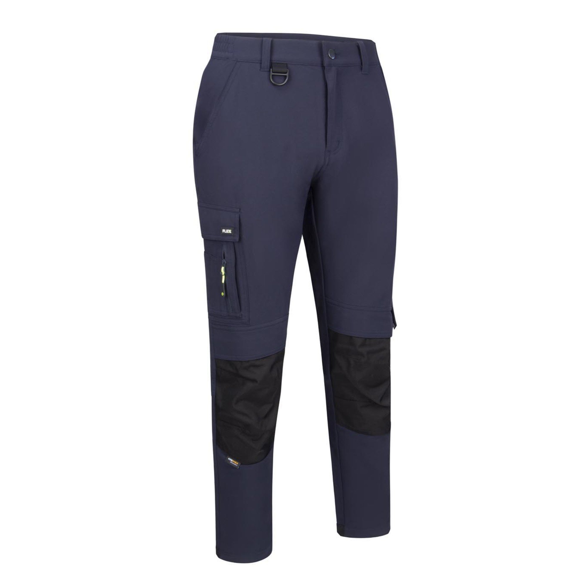 Women tailored fit for all-day comfort, mobility, and on-site performance. 89% Nylon with 11% Spandex outer fabric 225gsm Fabric weight Medium weight trouser Four way stretch fabric Flex stretch fabric allows for a comfortable and functional fit Cordura on heel for harder wearing Cordura fabric to knees Knee pad pouch pockets YKK heavy duty zip Heavy duty button fastener Half elasticated waist for added comfort Five loop belt waistband D ring for security or ID tag Tapered leg for comfort and styling Two angled hip pockets Multipurpose pocket to right thigh Large cargo pocket with hook and loop closure to left thigh Two rear pockets Available in regular, short and tall leg fit