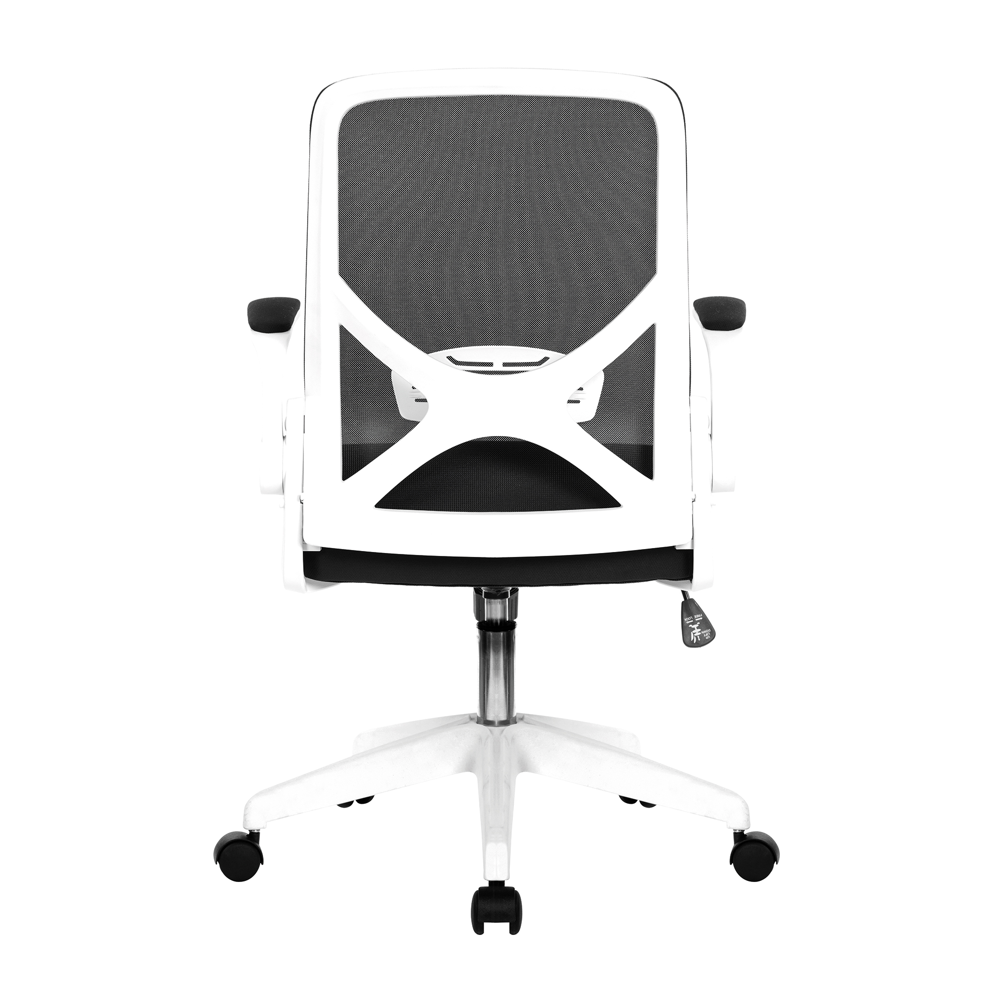 required. The chair features fixed lumbar support, a generously padded seatpad, complementing mesh back upholstery and a striking