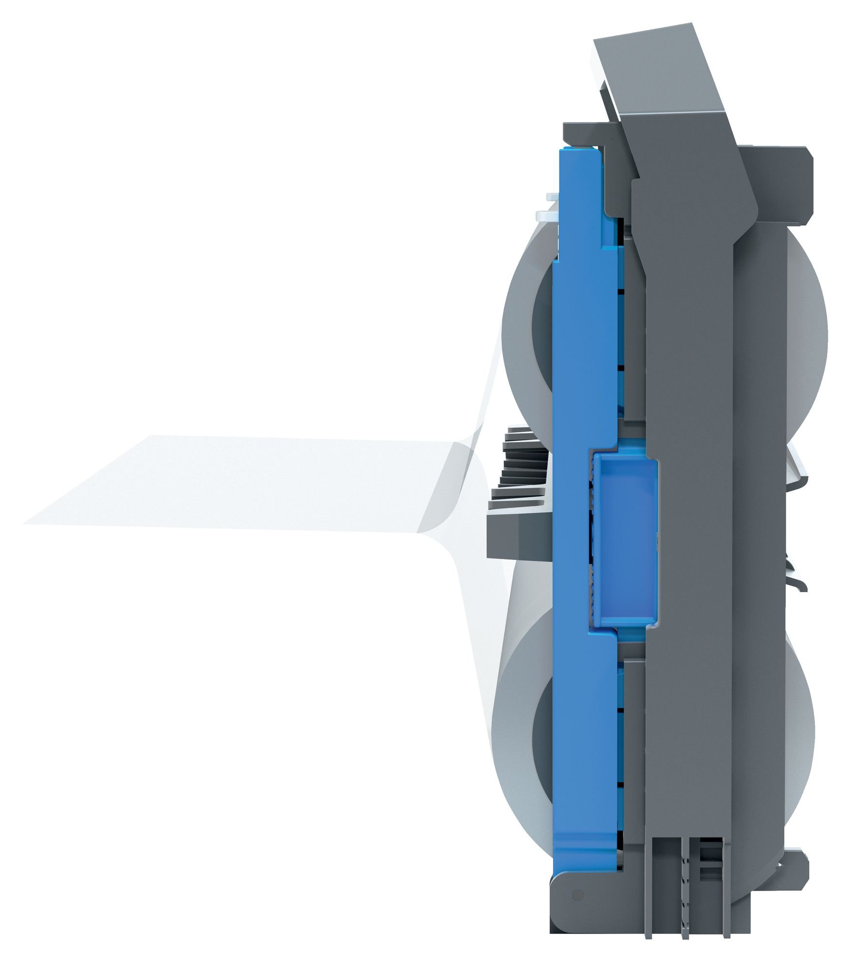 • To refill: Simply remove empty cartridge, open the cartridge levers, insert a replacement roll and close the levers.