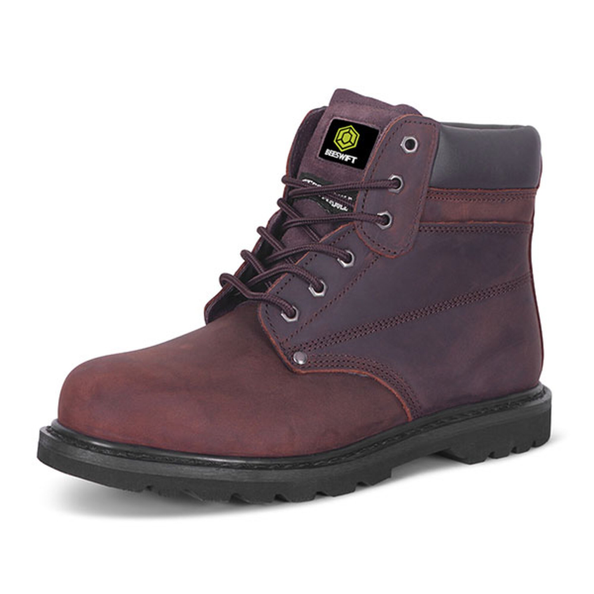 Goodyear Welted, 200 Joule steel toe cap, Steel midsole protection, Oil resistant sole, Heat resistant sole to 300°C, Slip resistant, Leather upper, Conforms to EN ISO 20345:2011 SBP HRO SRC
