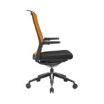 Slimline, refined and beautifully designed, this high back chair is feature rich, comfortable and stunning to the eye. It offers an expansive high back upholstered backrest with a dependable frame, a slimline seat which is both compact and deceptively comfortable, height adjustable arms with padded armrests, and a black nylon base with silver detailing. The chair provides seat height adjustment, seat slide and a synchronous mechanism – all of which controlled by subtly built-in levers which offer no shortfall in terms of functionality, but with a compact and visually stylish aesthetic.