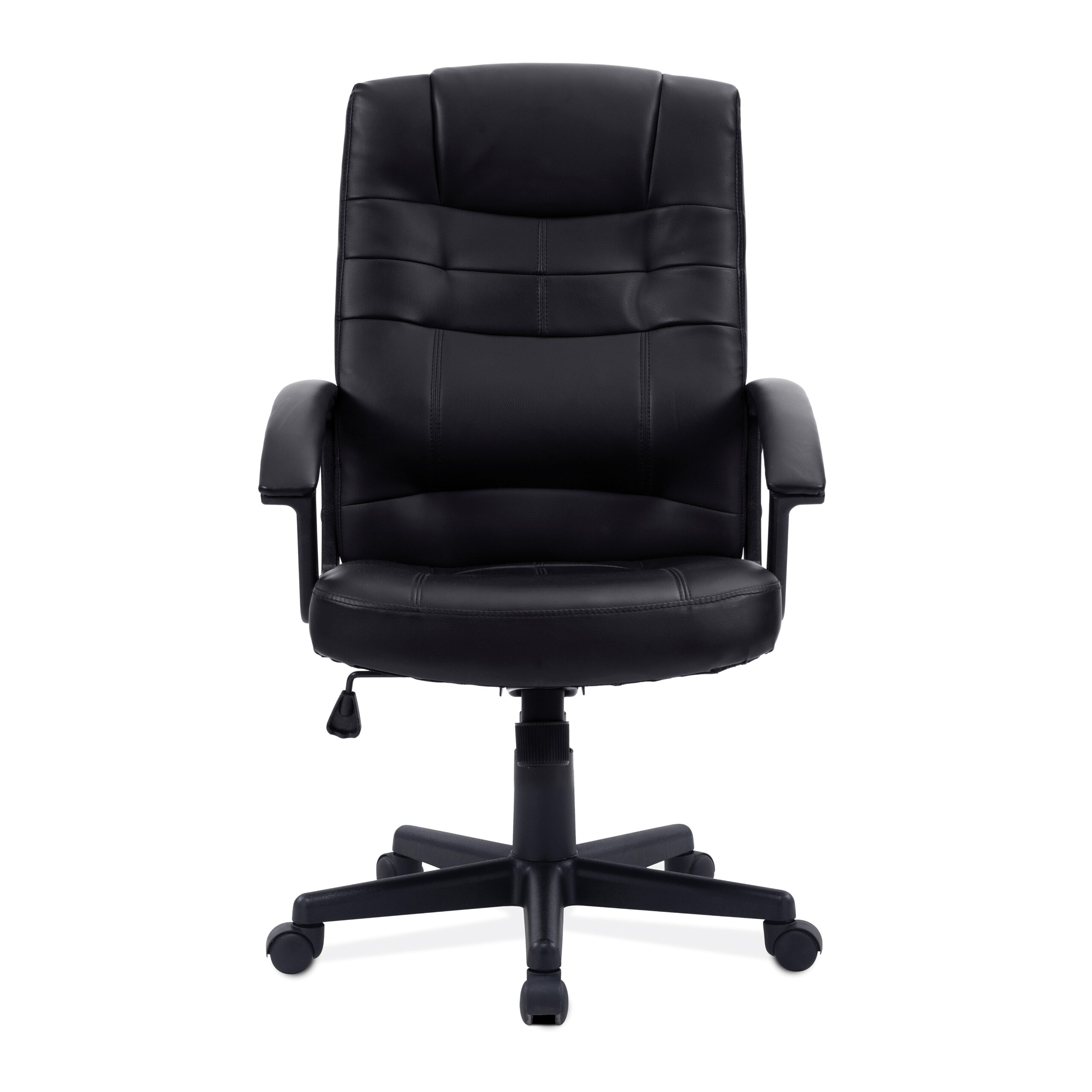 High Back Leather Effect Executive Armchair with Integral Headrest – Black