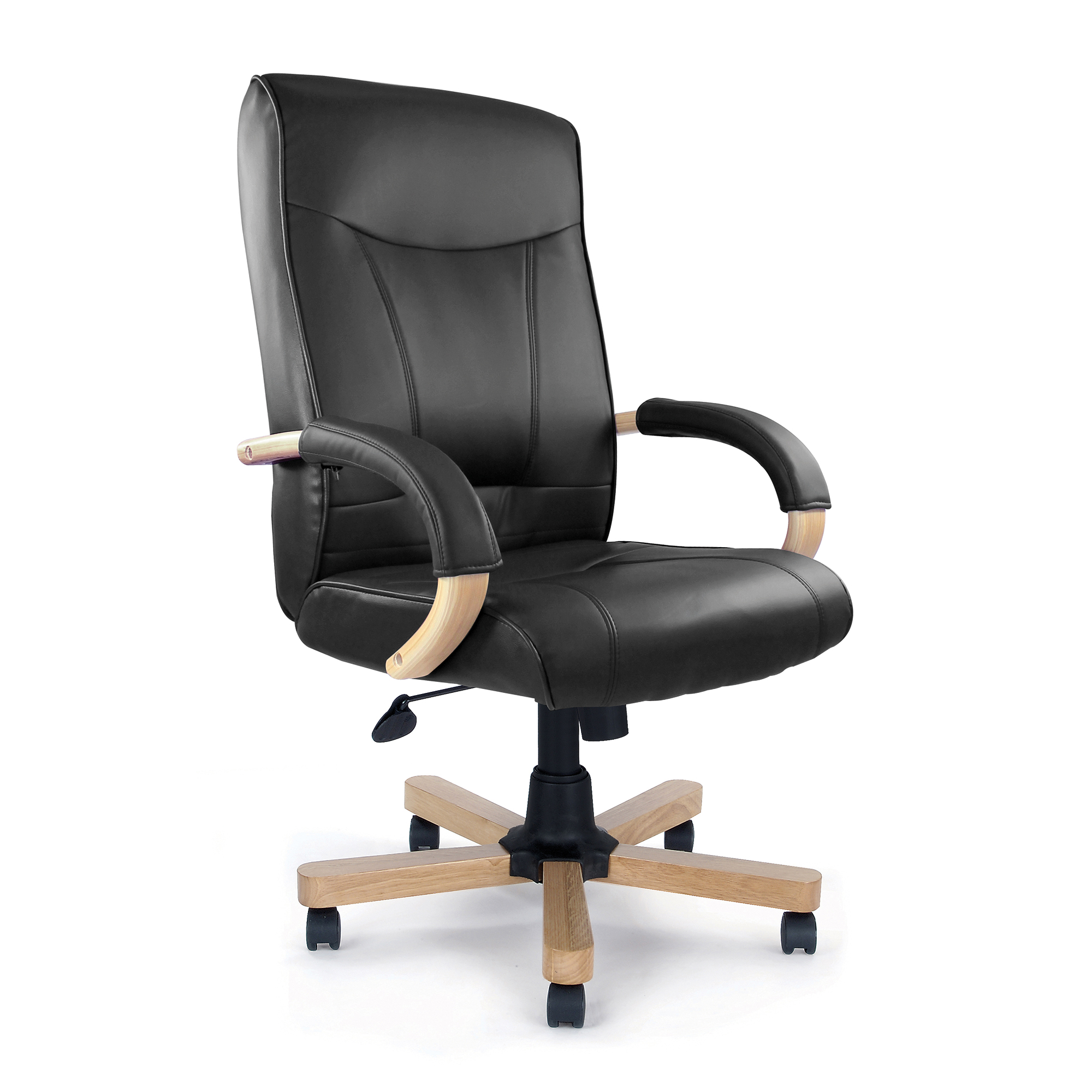 High Back Leather Faced Executive Chair with Oak Effect Arms & Base