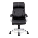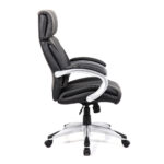 High Back Leather Faced Manager Chair with Satin Silver Finish to Armrests and Base – Black