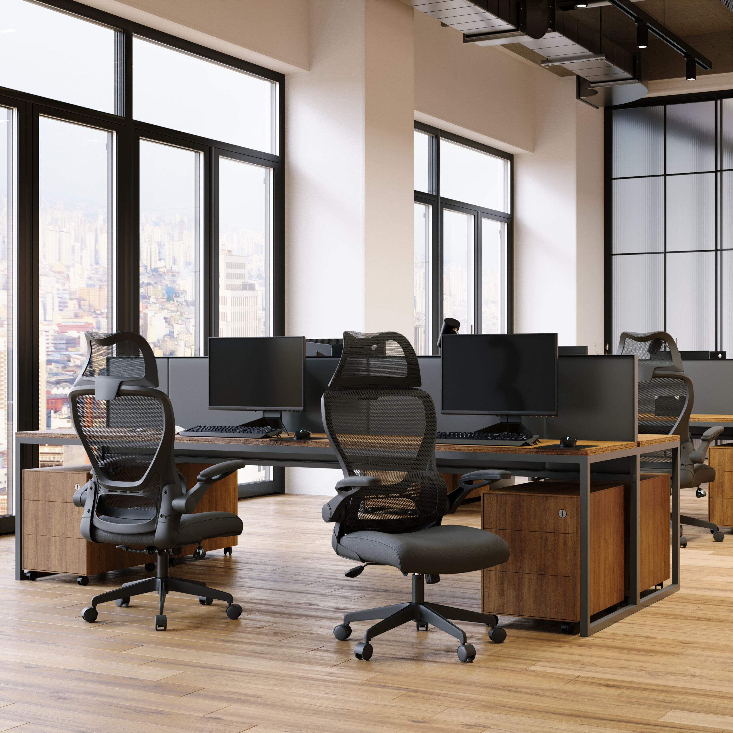 High Back Mesh Chair with Moulded Seat Foam, Folding Arms and Headrest