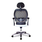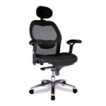 High Back Mesh Synchronous Executive Armchair with Adjustable Lumbar Support, Arms, Headrest and Chrome Base – Black