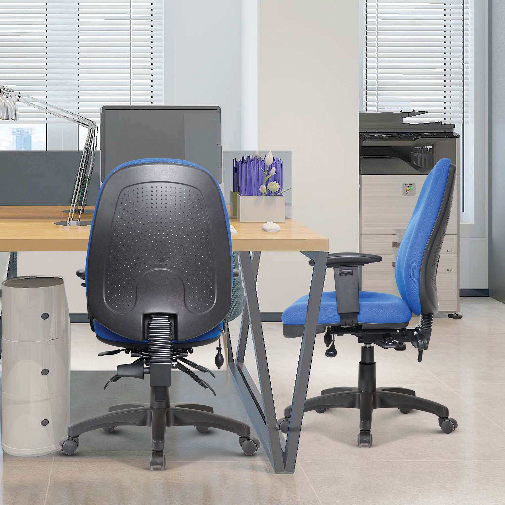 High Back Operator Chair with Height Adjustable Back & Arms, Seat Slider, Back Tilt Mechanism & Air Lumbar Pump – Blue