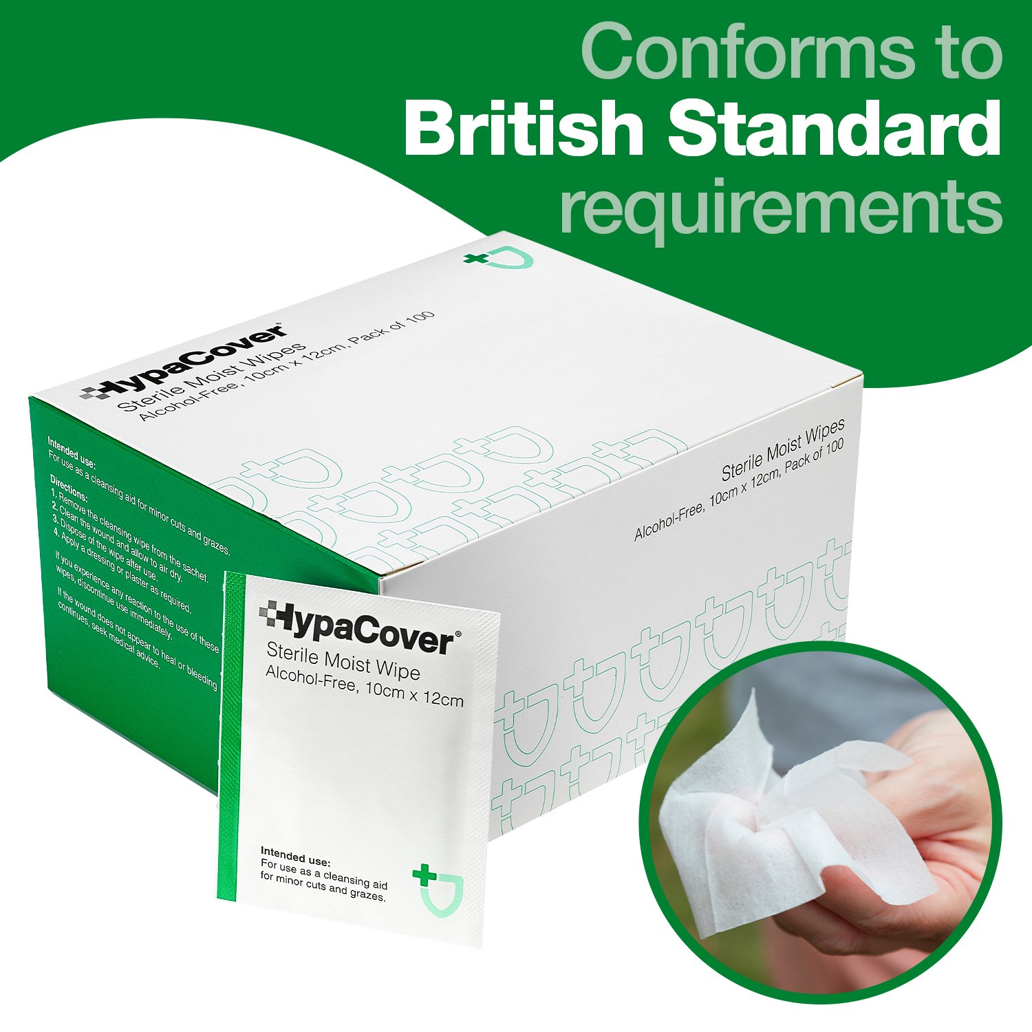 The HypaCover Sterile Moist Wipes, Alcohol-Free (100 Pack) are premium wipes designed for optimal wound cleansing and skin hygiene. Saturated with a gentle, aqueous solution, these individually wrapped sterile wipes are safe for use directly on open wounds, without stinging or irritation.