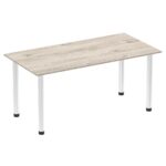 Impulse 1600mm Straight Table Grey Oak Top Chrome Post Leg I003617 DD