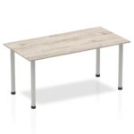 Impulse 1600mm Straight Table Grey Oak Top Silver Post Leg I003253 DD